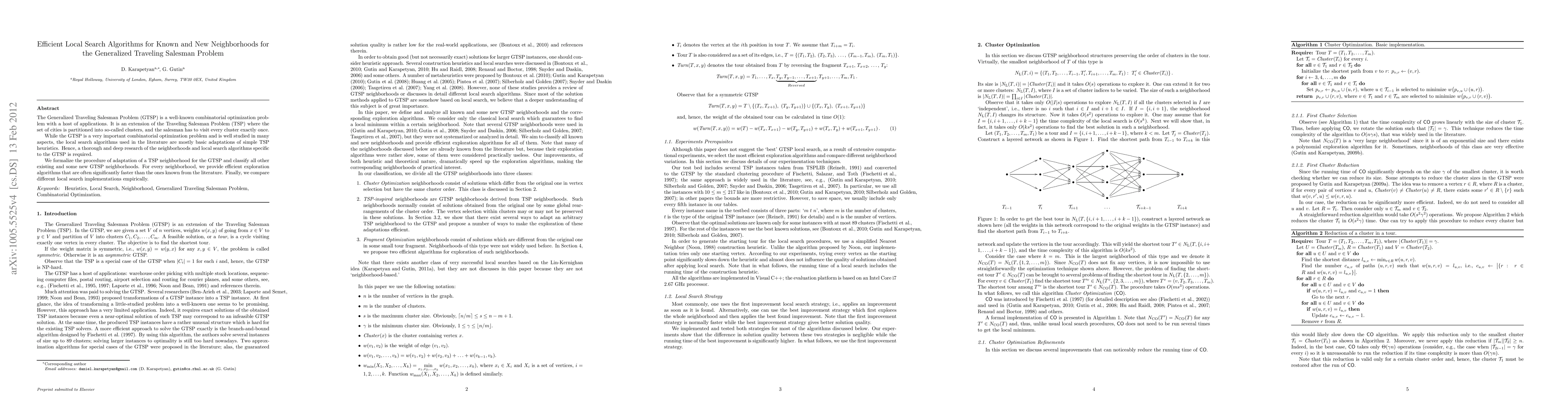 Researchers developed efficient local search algorithms for the Generalized Traveling Salesman Problem (GTSP), improving upon existing methods with faster exploration times. They also formalized a procedure for adapting TSP neighborhoods to GTSP, classifying new neighborhood types.