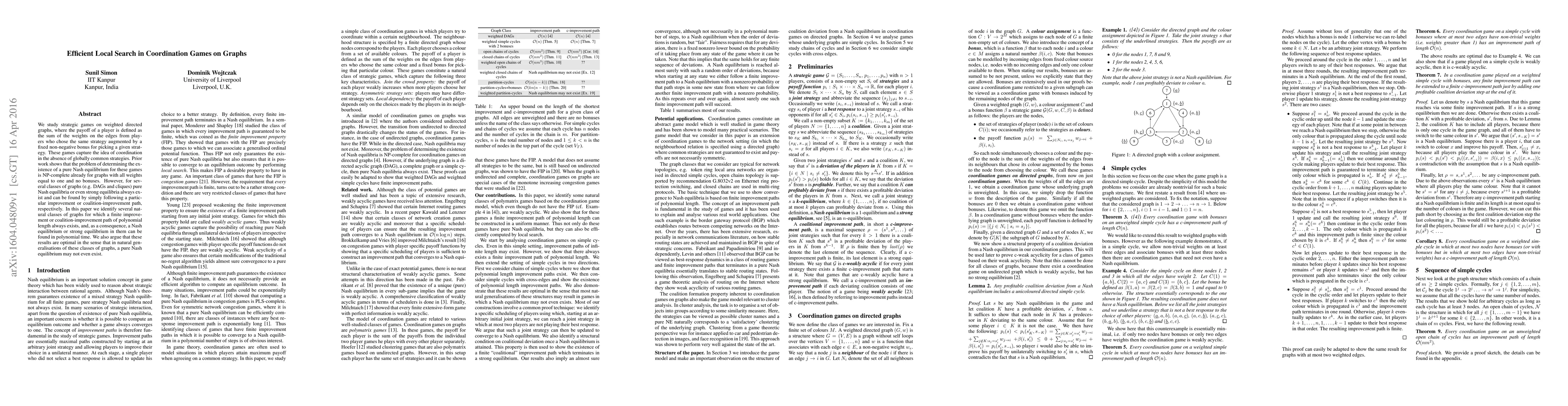 We study strategic games on weighted directed graphs, where the payoff of a player is defined as the sum of the weights on the edges from players who chose the same strategy augmented by a fixed non-negative bonus for picking a given strategy. These games capture the idea of coordination in the absence of globally common strategies. Prior work shows that the problem of determining the existence of a pure Nash equilibrium for these games is NP-complete already for graphs with all weights equal to one and no bonuses. However, for several classes of graphs (e.g. DAGs and cliques) pure Nash equilibria or even strong equilibria always exist and can be found by simply following a particular improvement or coalition-improvement path, respectively. In this paper we identify several natural classes of graphs for which a finite improvement or coalition-improvement path of polynomial length always exists, and, as a consequence, a Nash equilibrium or strong equilibrium in them can be found in polynomial time. We also argue that these results are optimal in the sense that in natural generalisations of these classes of graphs, a pure Nash equilibrium may not even exist.