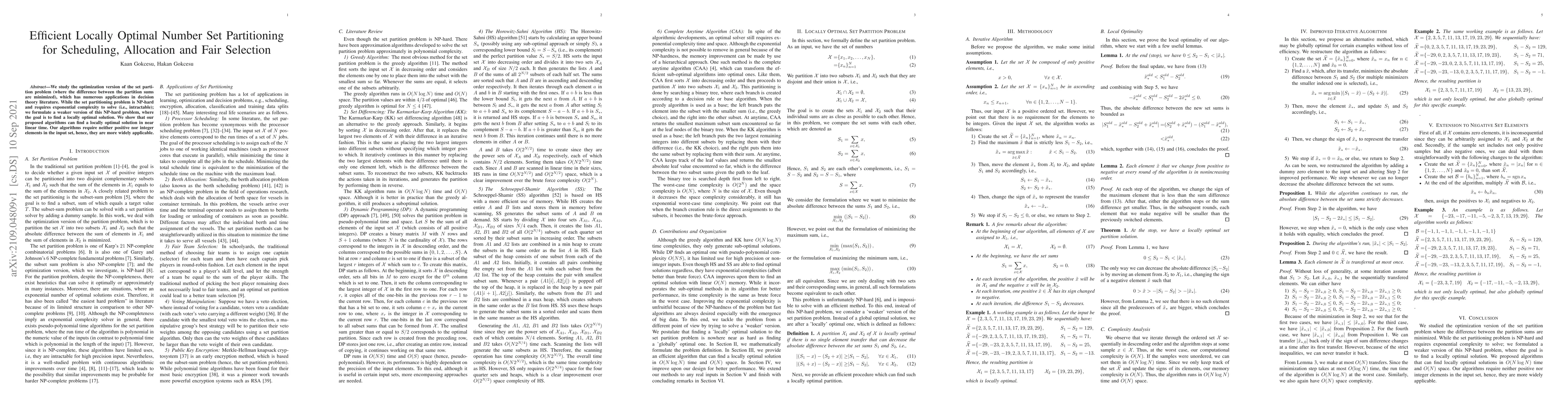 Researchers developed efficient algorithms to find locally optimal solutions for a variant of the set partition problem, achieving near-linear time complexity and making it applicable to non-integer input sets.