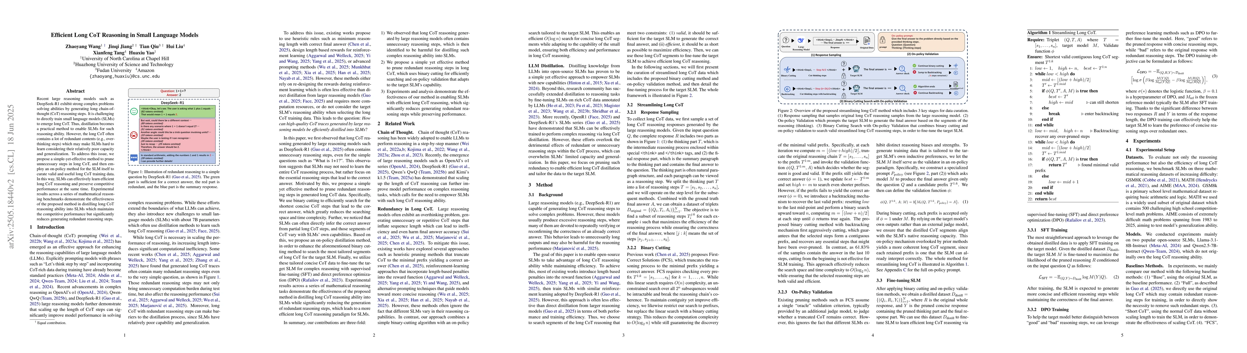 This paper proposes a method to prune unnecessary steps in long chain-of-thought reasoning for small language models, enabling them to learn efficient long CoT reasoning while maintaining competitive performance.
