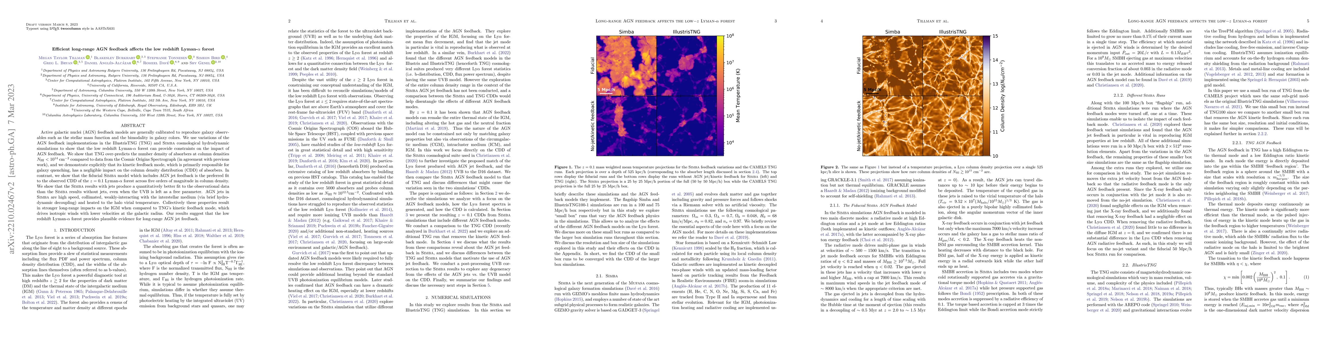 Active galactic nuclei (AGN) feedback models are generally calibrated to reproduce galaxy observables such as the stellar mass function and the bimodality in galaxy colors. We use variations of the AGN feedback implementations in the IllustrisTNG (TNG) and Simba cosmological hydrodynamic simulations to show that the low redshift Lyman-$\alpha$ forest can provide constraints on the impact of AGN feedback. We show that TNG over-predicts the number density of absorbers at column densities $N_{\rm HI} < 10^{14}$ cm$^{-2}$ compared to data from the Cosmic Origins Spectrograph (in agreement with previous work), and we demonstrate explicitly that its kinetic feedback mode, which is primarily responsible for galaxy quenching, has a negligible impact on the column density distribution (CDD) of absorbers. In contrast, we show that the fiducial Simba model which includes AGN jet feedback is the preferred fit to the observed CDD of the $z = 0.1$ Lyman-$\alpha$ forest across five orders of magnitude in column density. We show that the Simba results with jets produce a quantitatively better fit to the observational data than the Simba results without jets, even when the UVB is left as a free parameter. AGN jets in Simba are high speed, collimated, weakly-interacting with the interstellar medium (via brief hydrodynamic decoupling) and heated to the halo virial temperature. Collectively these properties result in stronger long-range impacts on the IGM when compared to TNG's kinetic feedback mode, which drives isotropic winds with lower velocities at the galactic radius. Our results suggest that the low redshift Lyman-$\alpha$ forest provides plausible evidence for long-range AGN jet feedback.