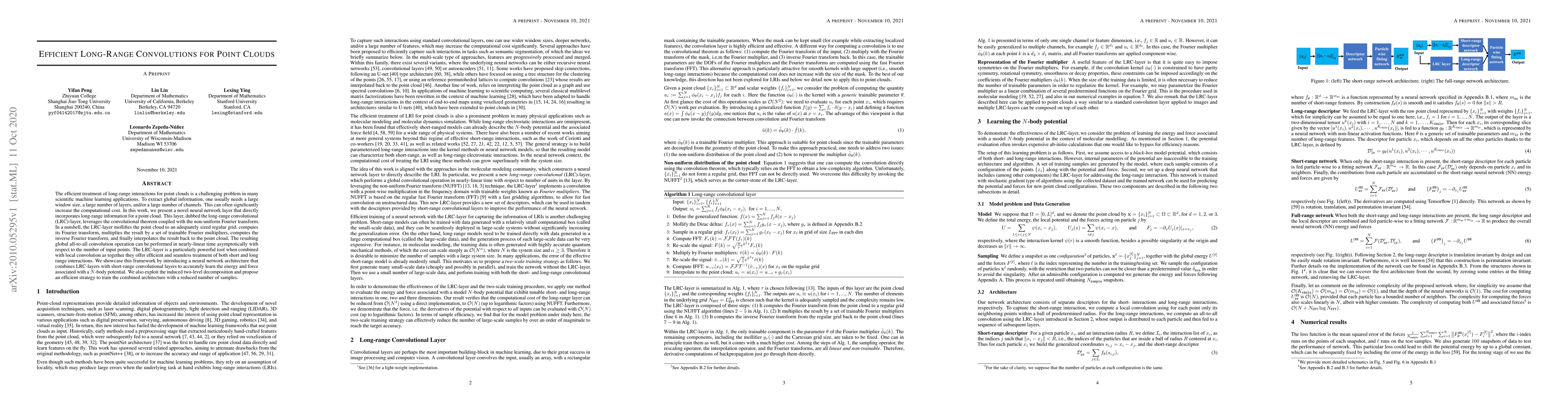 The efficient treatment of long-range interactions for point clouds is a challenging problem in many scientific machine learning applications. To extract global information, one usually needs a large window size, a large number of layers, and/or a large number of channels. This can often significantly increase the computational cost. In this work, we present a novel neural network layer that directly incorporates long-range information for a point cloud. This layer, dubbed the long-range convolutional (LRC)-layer, leverages the convolutional theorem coupled with the non-uniform Fourier transform. In a nutshell, the LRC-layer mollifies the point cloud to an adequately sized regular grid, computes its Fourier transform, multiplies the result by a set of trainable Fourier multipliers, computes the inverse Fourier transform, and finally interpolates the result back to the point cloud. The resulting global all-to-all convolution operation can be performed in nearly-linear time asymptotically with respect to the number of input points. The LRC-layer is a particularly powerful tool when combined with local convolution as together they offer efficient and seamless treatment of both short and long range interactions. We showcase this framework by introducing a neural network architecture that combines LRC-layers with short-range convolutional layers to accurately learn the energy and force associated with a $N$-body potential. We also exploit the induced two-level decomposition and propose an efficient strategy to train the combined architecture with a reduced number of samples.