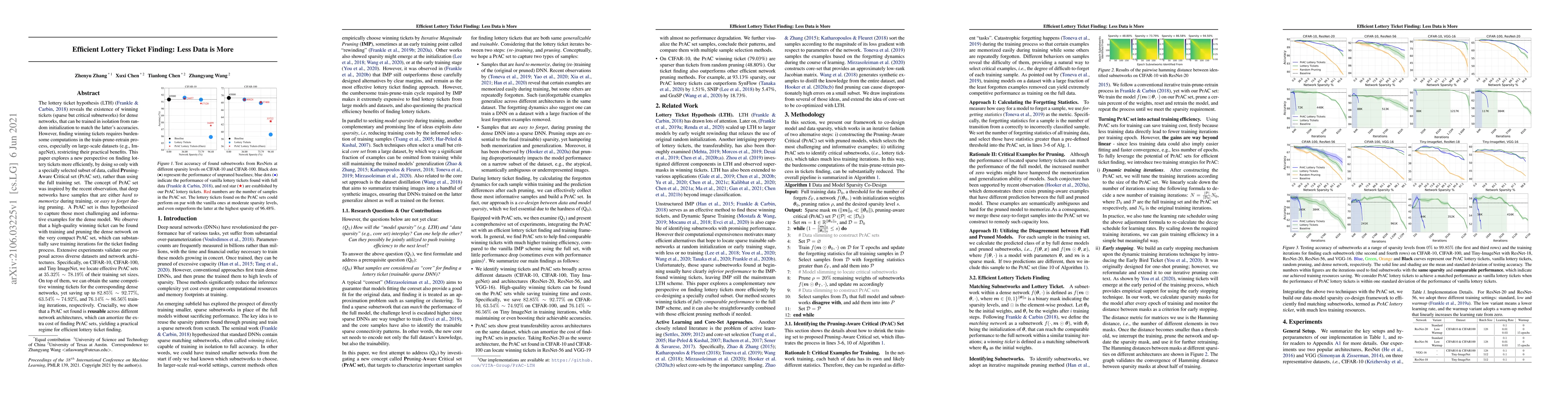 This paper proposes a method to efficiently find winning tickets in dense networks using a specially selected subset of data called the Pruning-Aware Critical set (PrAC set), which significantly reduces training iterations compared to using the full training set. Experiments show substantial savings in training time across various datasets and architectures.