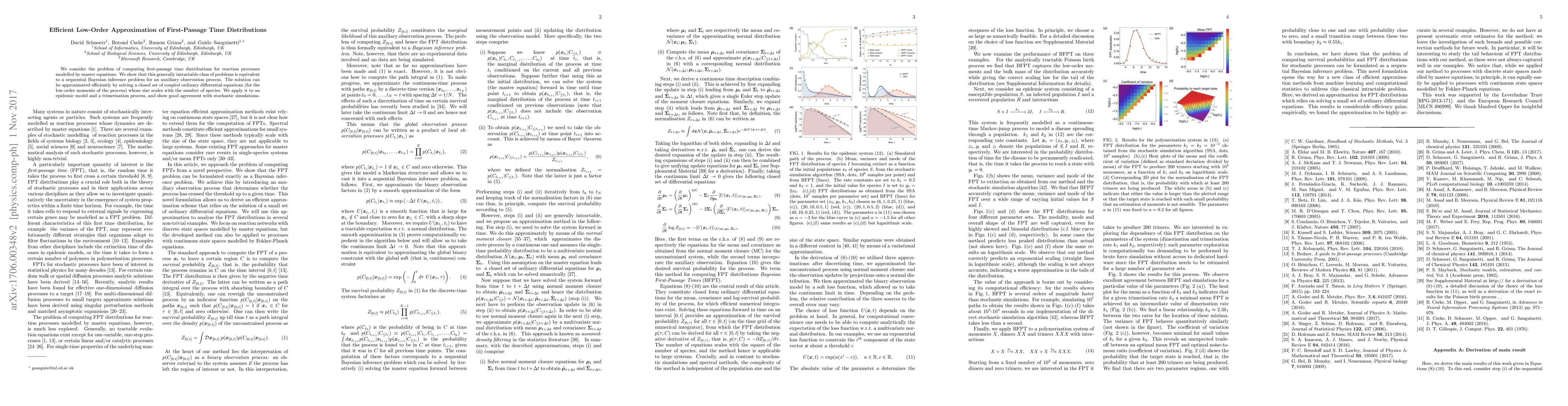 Researchers develop an efficient method to approximate first-passage time distributions for complex reaction processes, solving a set of coupled ordinary differential equations that scale with the number of species.
