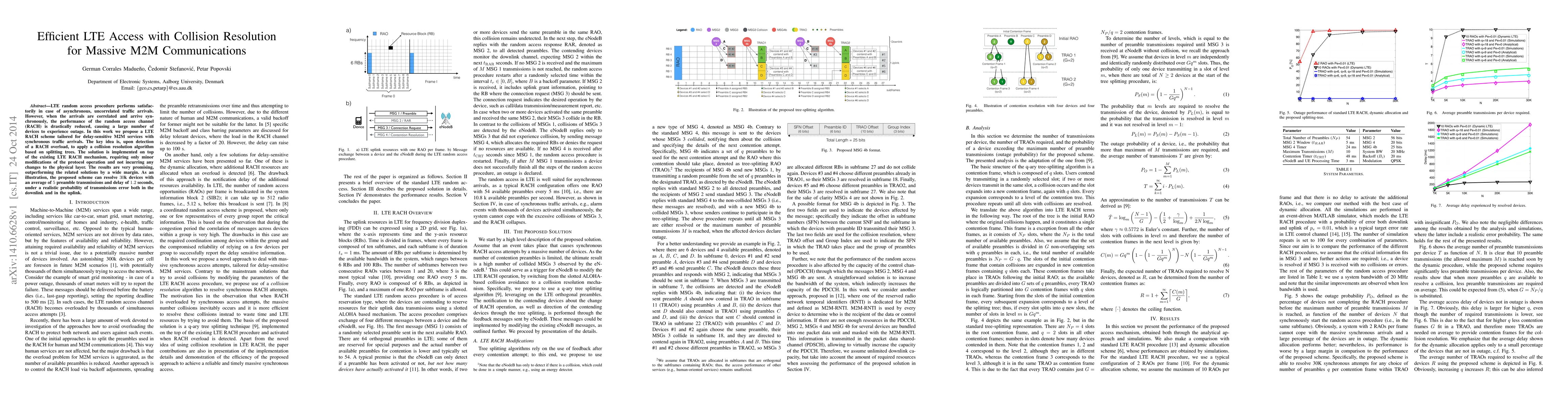 This paper proposes an enhanced LTE random access scheme for massive M2M communications, addressing the performance degradation caused by synchronous traffic arrivals. The solution introduces a collision resolution algorithm based on splitting trees, achieving significant improvements over existing solutions with minimal protocol modifications.