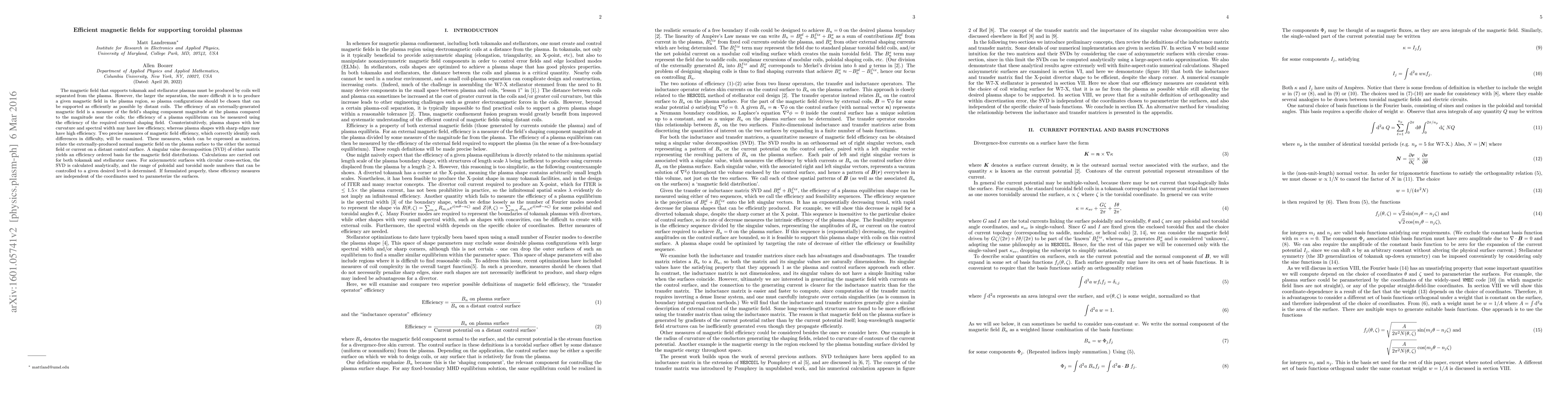 Researchers explored efficient magnetic fields for toroidal plasmas, finding that shapes with sharp edges can have high efficiency, contrary to intuition.