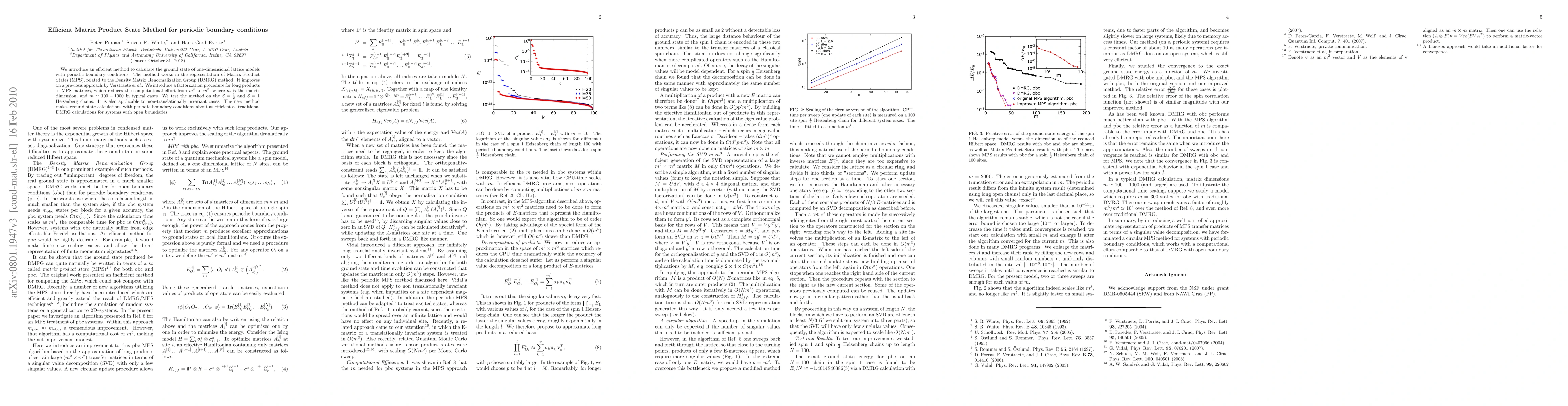 We introduce an efficient method to calculate the ground state of one-dimensional lattice models with periodic boundary conditions. The method works in the representation of Matrix Product States (MPS), related to the Density Matrix Renormalization Group (DMRG) method. It improves on a previous approach by Verstraete et al. We introduce a factorization procedure for long products of MPS matrices, which reduces the computational effort from m^5 to m^3, where m is the matrix dimension, and m ~ 100 - 1000 in typical cases. We test the method on the S=1/2 and S=1 Heisenberg chains. It is also applicable to non-translationally invariant cases. The new method makes ground state calculations with periodic boundary conditions about as efficient as traditional DMRG calculations for systems with open boundaries.