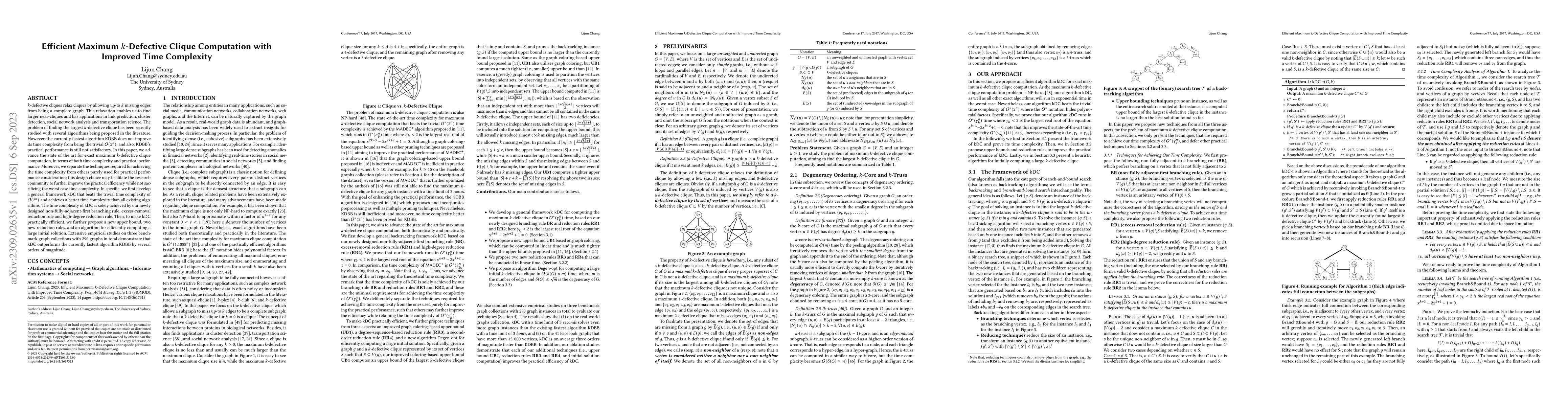 $k$-defective cliques relax cliques by allowing up-to $k$ missing edges from being a complete graph. This relaxation enables us to find larger near-cliques and has applications in link prediction, cluster detection, social network analysis and transportation science. The problem of finding the largest $k$-defective clique has been recently studied with several algorithms being proposed in the literature. However, the currently fastest algorithm KDBB does not improve its time complexity from being the trivial $O(2^n)$, and also, KDBB's practical performance is still not satisfactory. In this paper, we advance the state of the art for exact maximum $k$-defective clique computation, in terms of both time complexity and practical performance. Moreover, we separate the techniques required for achieving the time complexity from others purely used for practical performance consideration; this design choice may facilitate the research community to further improve the practical efficiency while not sacrificing the worst case time complexity. In specific, we first develop a general framework kDC that beats the trivial time complexity of $O(2^n)$ and achieves a better time complexity than all existing algorithms. The time complexity of kDC is solely achieved by non-fully-adjacent-first branching rule, excess-removal reduction rule and high-degree reduction rule. Then, to make kDC practically efficient, we further propose a new upper bound, two reduction rules, and an algorithm for efficiently computing a large initial solution. Extensive empirical studies on three benchmark graph collections with $290$ graphs in total demonstrate that kDC outperforms the currently fastest algorithm KDBB by several orders of magnitude.