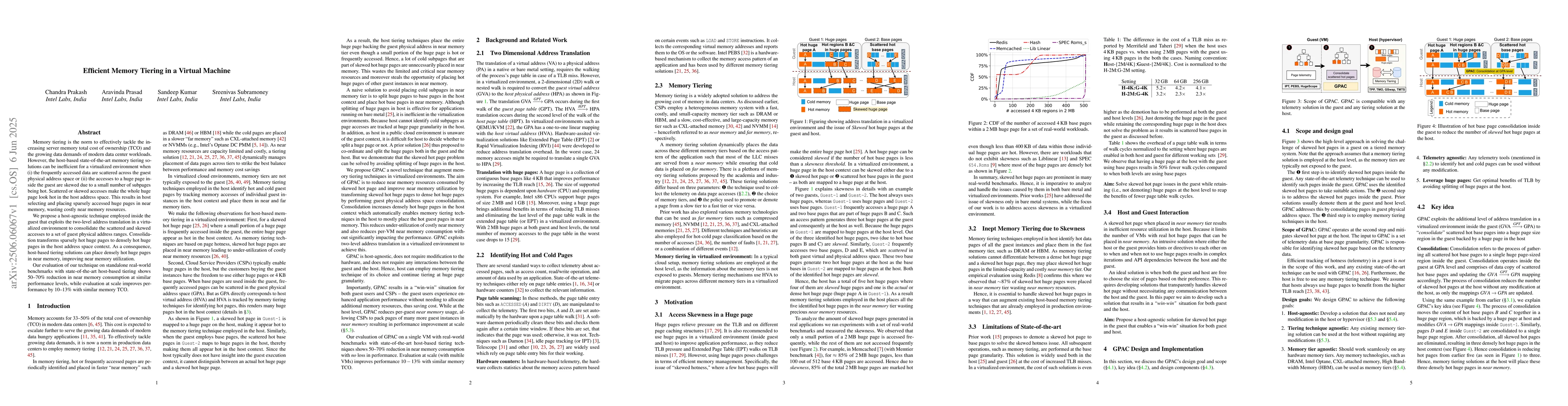 This research proposes a host-agnostic technique to improve memory tiering efficiency in virtual machines by consolidating scattered and skewed accesses into densely hot huge pages, reducing near memory consumption by 50-70%.