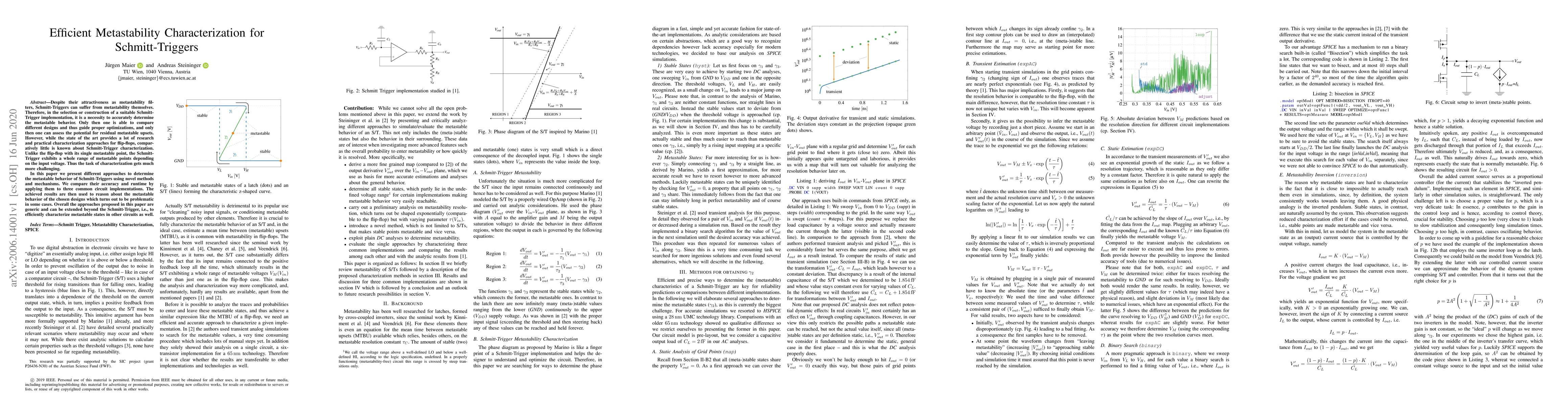This paper proposes novel methods for characterizing the metastable behavior of Schmitt-Triggers, comparing their accuracy and runtime across three common implementations. The findings highlight problematic metastable states in some designs, demonstrating the potential for these methods to extend beyond Schmitt-Triggers to other circuit types.