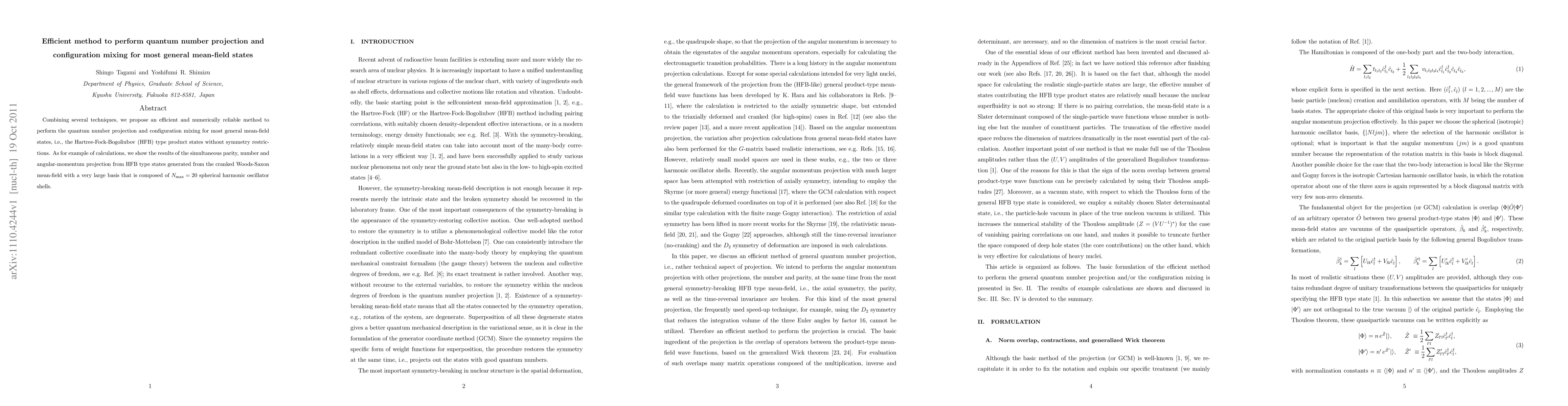 Combining several techniques, we propose an efficient and numerically reliable method to perform the quantum number projection and configuration mixing for most general mean-field states, i.e., the Hartree-Fock-Bogoliubov (HFB) type product states without symmetry restrictions. As for example of calculations, we show the results of the simultaneous parity, number and angular-momentum projection from HFB type states generated from the cranked Woods-Saxon mean-field with a very large basis that is composed of Nmax=20 spherical harmonic oscillator shells.