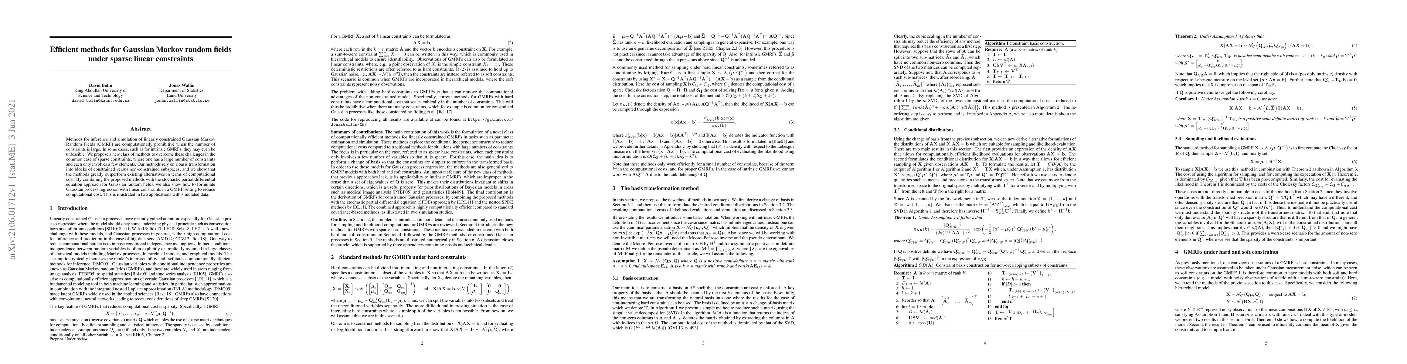 This paper proposes efficient methods for inference and simulation of Gaussian Markov Random Fields (GMRF) under sparse linear constraints, addressing the computational challenges posed by large numbers of constraints. The new methods transform the basis into constrained and non-constrained subspaces, significantly reducing computational costs compared to existing alternatives.
