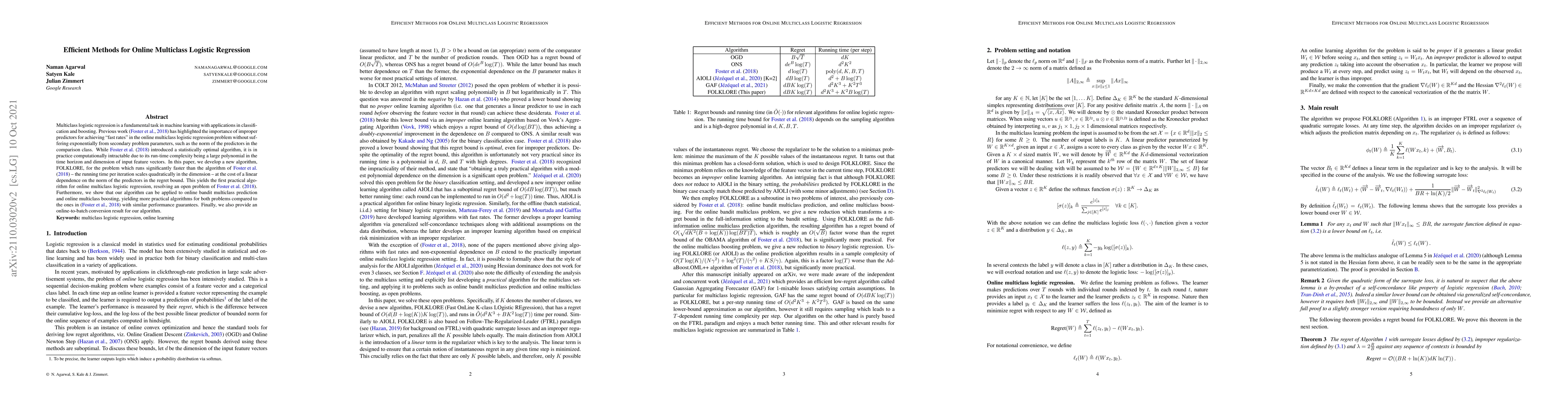 This paper introduces FOLKLORE, a new algorithm for online multiclass logistic regression that significantly reduces computational complexity compared to previous methods, achieving quadratic scaling in dimension while maintaining practical performance. It also extends to online bandit multiclass prediction and boosting with similar guarantees.