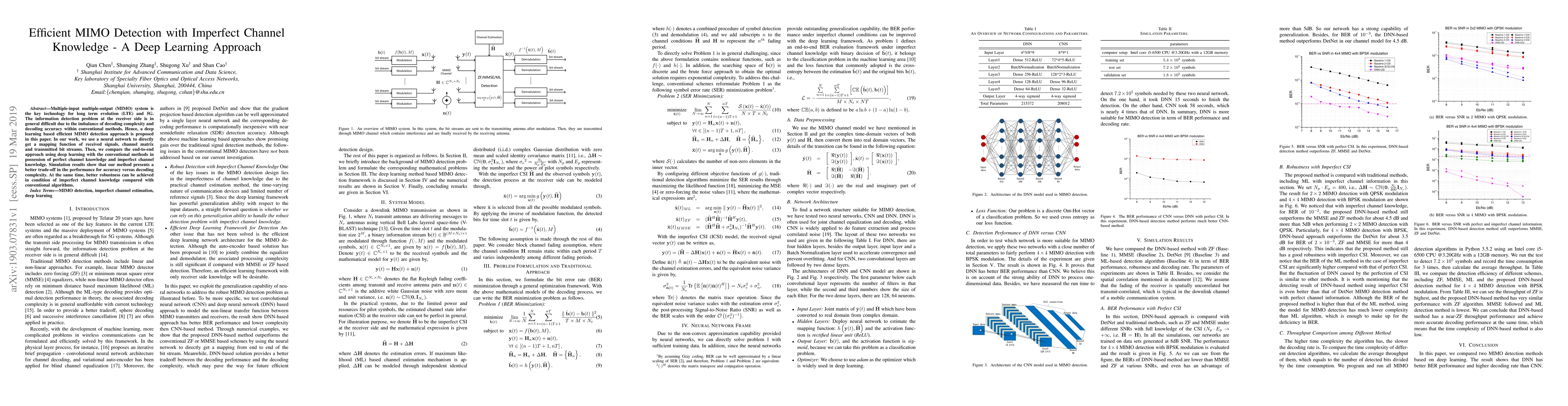 Multiple-input multiple-output (MIMO) system is the key technology for long term evolution (LTE) and 5G. The information detection problem at the receiver side is in general difficult due to the imbalance of decoding complexity and decoding accuracy within conventional methods. Hence, a deep learning based efficient MIMO detection approach is proposed in this paper. In our work, we use a neural network to directly get a mapping function of received signals, channel matrix and transmitted bit streams. Then, we compare the end-to-end approach using deep learning with the conventional methods in possession of perfect channel knowledge and imperfect channel knowledge. Simulation results show that our method presents a better trade-off in the performance for accuracy versus decoding complexity. At the same time, better robustness can be achieved in condition of imperfect channel knowledge compared with conventional algorithms.