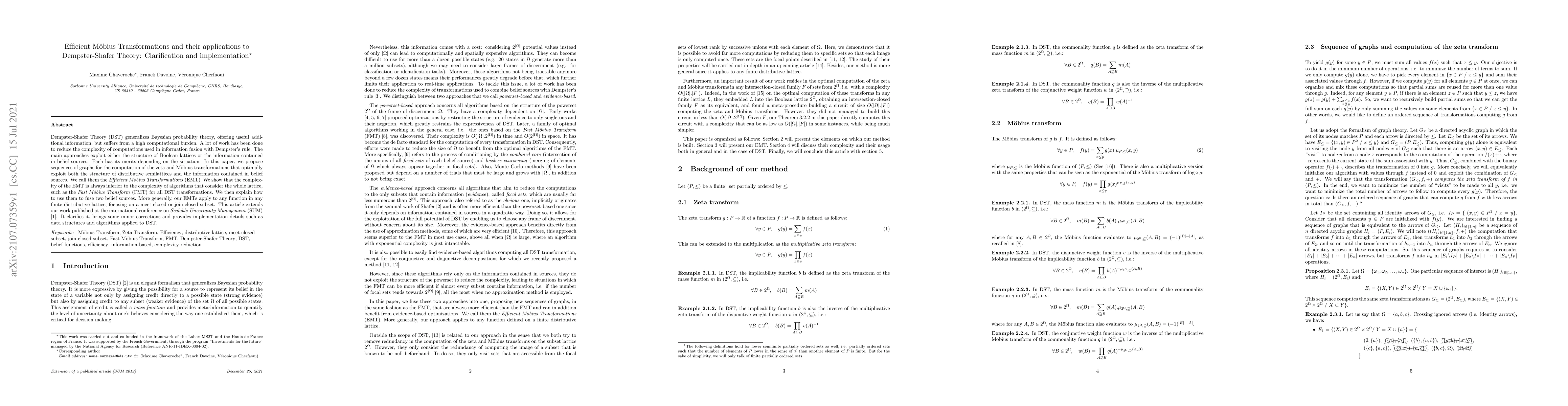 Dempster-Shafer Theory (DST) generalizes Bayesian probability theory, offering useful additional information, but suffers from a high computational burden. A lot of work has been done to reduce the complexity of computations used in information fusion with Dempster's rule. The main approaches exploit either the structure of Boolean lattices or the information contained in belief sources. Each has its merits depending on the situation. In this paper, we propose sequences of graphs for the computation of the zeta and M\"obius transformations that optimally exploit both the structure of distributive semilattices and the information contained in belief sources. We call them the Efficient M\"obius Transformations (EMT). We show that the complexity of the EMT is always inferior to the complexity of algorithms that consider the whole lattice, such as the Fast M\"obius Transform (FMT) for all DST transformations. We then explain how to use them to fuse two belief sources. More generally, our EMTs apply to any function in any finite distributive lattice, focusing on a meet-closed or join-closed subset. This article extends our work published at the international conference on Scalable Uncertainty Management (SUM). It clarifies it, brings some minor corrections and provides implementation details such as data structures and algorithms applied to DST.