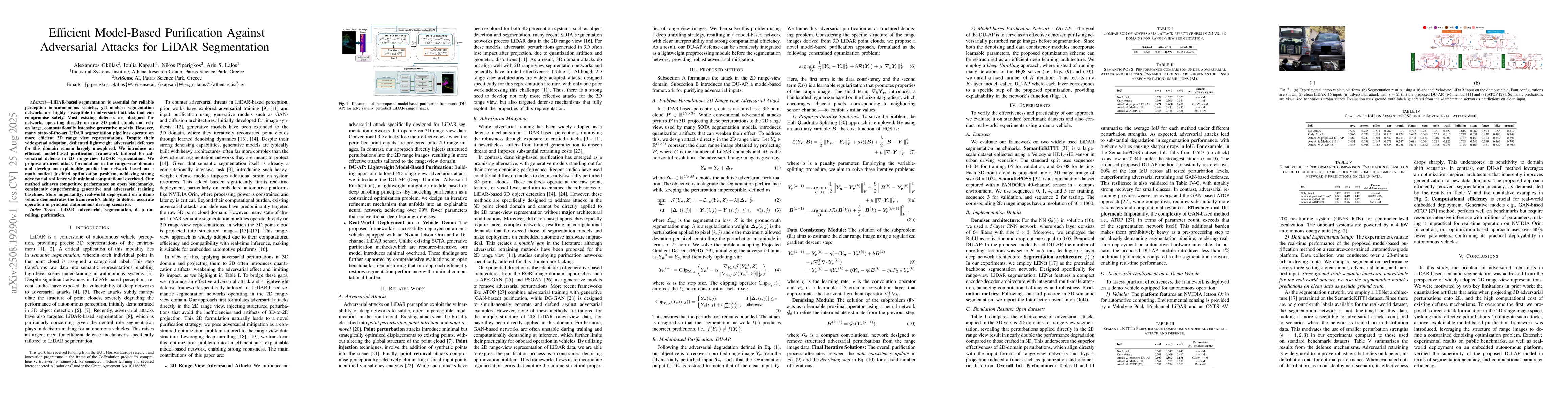 LiDAR-based segmentation is essential for reliable perception in autonomous vehicles, yet modern segmentation networks are highly susceptible to adversarial attacks that can compromise safety. Most existing defenses are designed for networks operating directly on raw 3D point clouds and rely on large, computationally intensive generative models. However, many state-of-the-art LiDAR segmentation pipelines operate on more efficient 2D range view representations. Despite their widespread adoption, dedicated lightweight adversarial defenses for this domain remain largely unexplored. We introduce an efficient model-based purification framework tailored for adversarial defense in 2D range-view LiDAR segmentation. We propose a direct attack formulation in the range-view domain and develop an explainable purification network based on a mathematical justified optimization problem, achieving strong adversarial resilience with minimal computational overhead. Our method achieves competitive performance on open benchmarks, consistently outperforming generative and adversarial training baselines. More importantly, real-world deployment on a demo vehicle demonstrates the framework's ability to deliver accurate operation in practical autonomous driving scenarios.