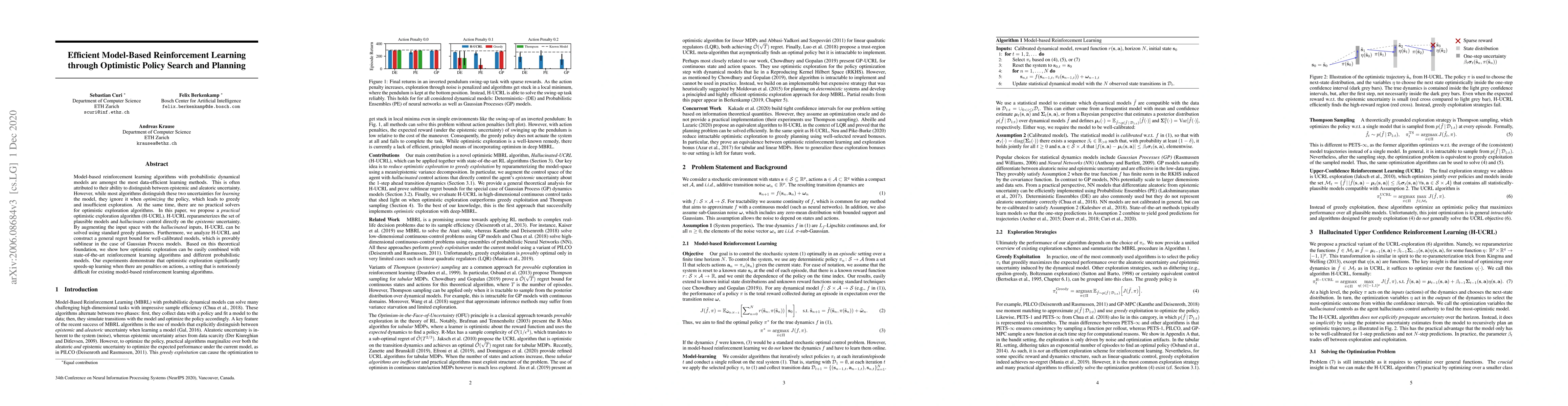 This paper proposes H-UCRL, a practical optimistic exploration algorithm for model-based reinforcement learning, which distinguishes between epistemic and aleatoric uncertainty during policy optimization. Experiments show that H-UCRL significantly accelerates learning, especially in settings with action penalties.