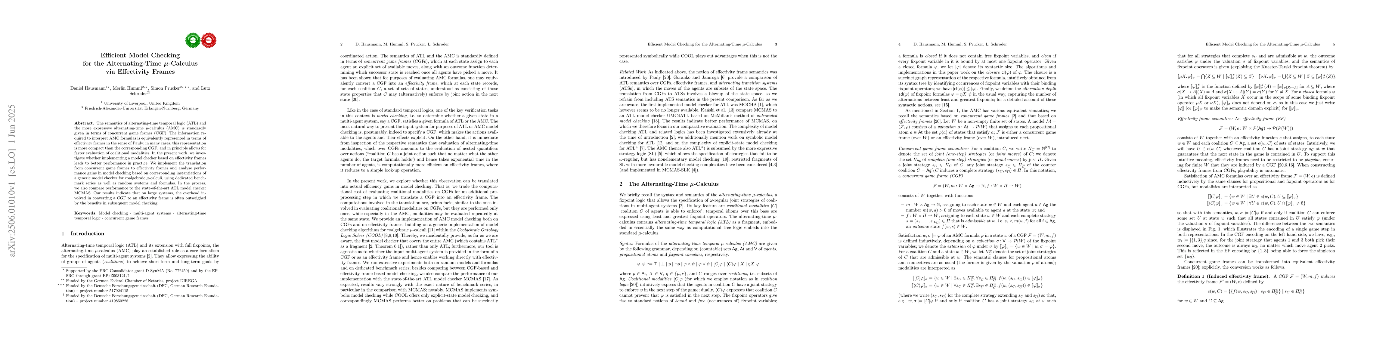 The research investigates the efficiency gains in model checking for the alternating-time μ-calculus by converting concurrent game frames (CGFs) into effectivity frames as a preprocessing step. It compares this method with direct model checking on CGFs within the same framework and against the state-of-the-art ATL model checker MCMAS.