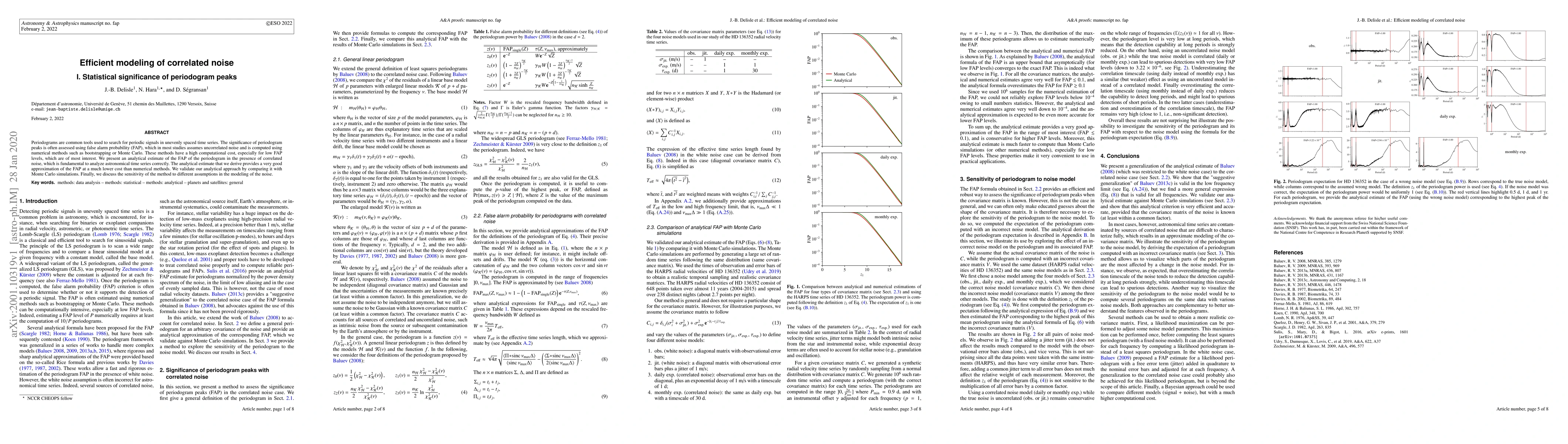 The paper presents an analytical estimate of false alarm probability (FAP) for periodogram peaks in the presence of correlated noise, providing a more cost-effective alternative to numerical methods.