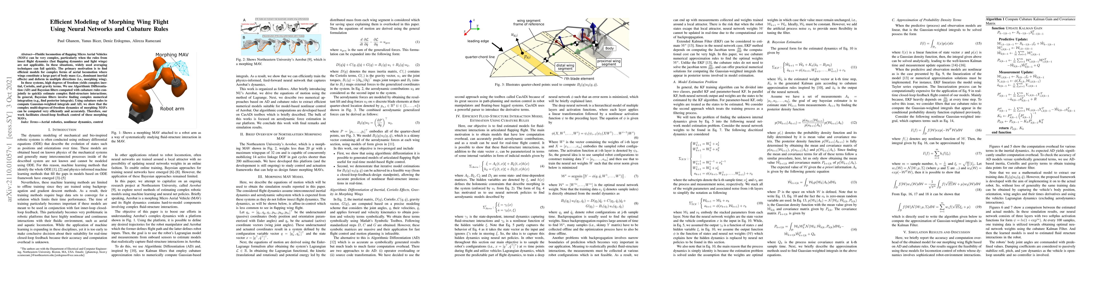 This paper proposes an efficient neural network-based model for complex morphing wing flight in Micro Aerial Vehicles (MAVs) using Algorithmic Differentiation and Bayesian filters with cubature rules to accurately estimate fluid-structure interactions, enabling effective closed-loop control.