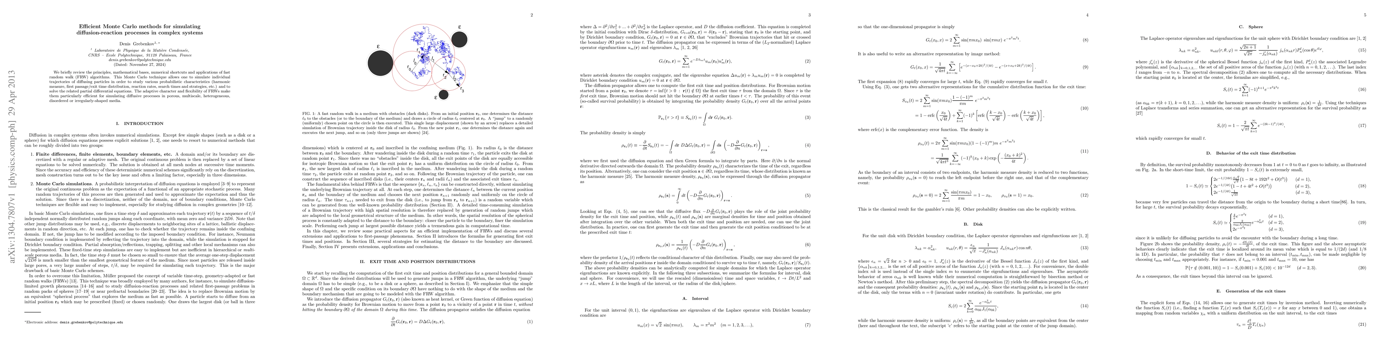 This paper reviews fast random walk (FRW) algorithms for efficient Monte Carlo simulations of diffusion-reaction processes, highlighting their adaptability for complex systems and their applications in solving related partial differential equations. FRWs are particularly effective for simulating diffusive behaviors in heterogeneous and disordered media.