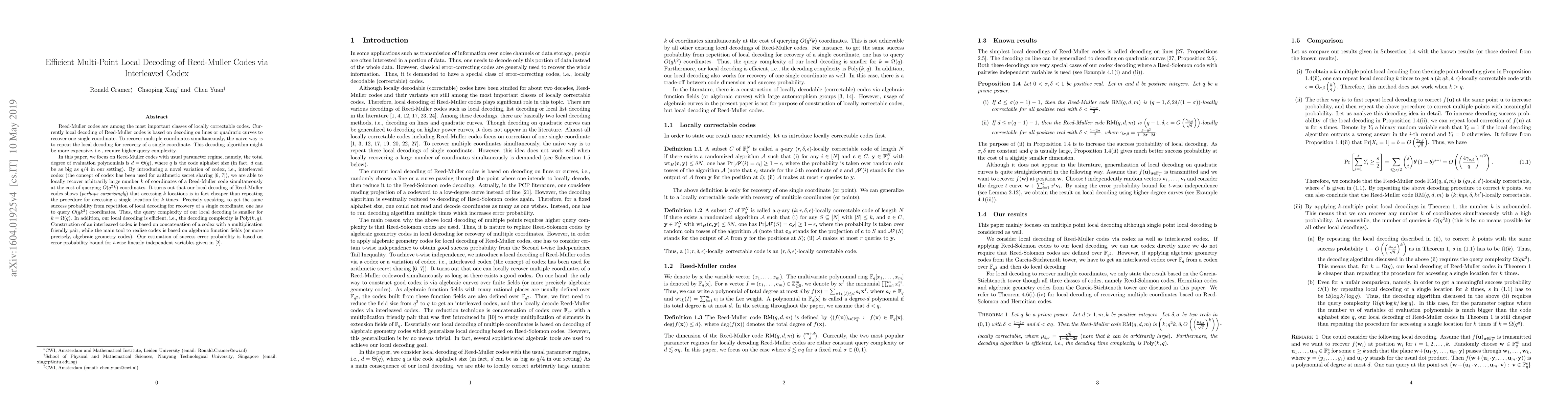 Researchers have developed an efficient method to locally decode Reed-Muller codes, allowing for the recovery of multiple coordinates simultaneously with a lower query complexity than repeating individual recoveries.