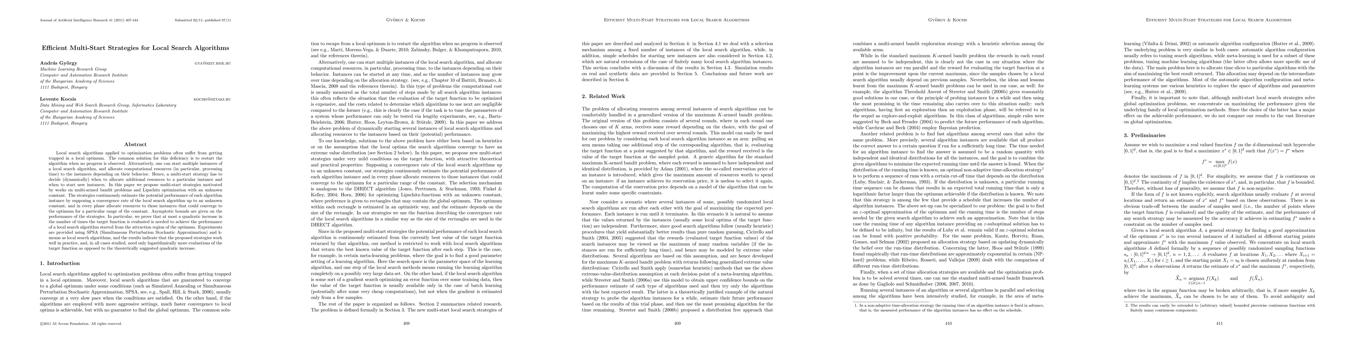 Researchers propose efficient multi-start strategies for local search algorithms to avoid getting stuck in local optima, requiring only logarithmically more evaluations than traditional methods.