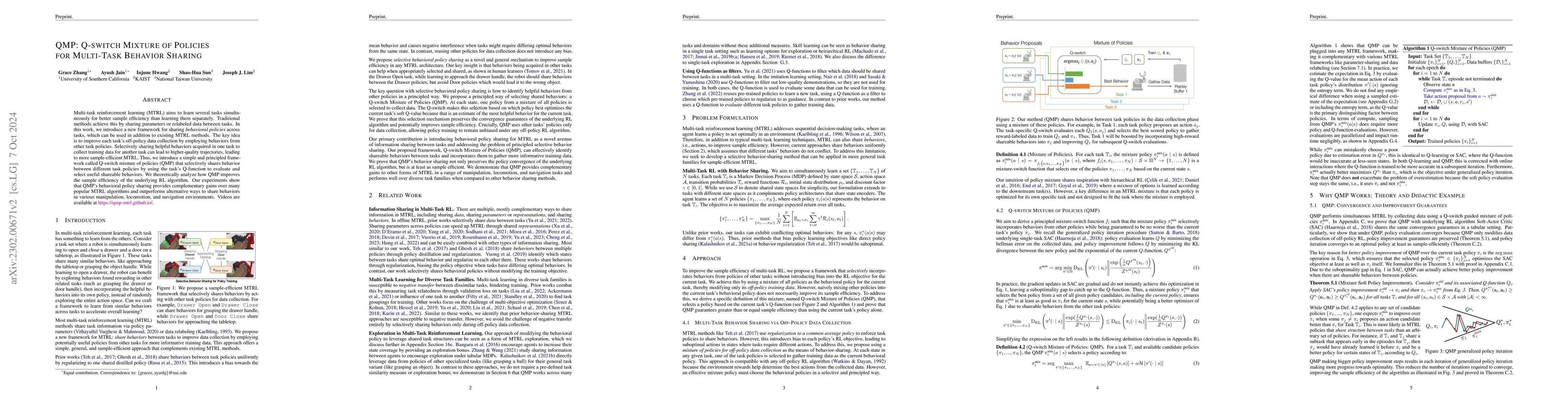This paper proposes a reinforcement learning framework that enhances sample efficiency in multi-task reinforcement learning by identifying and sharing behaviors across tasks. The method identifies and leverages shareable behaviors to guide exploration, improving performance and efficiency in manipulation and navigation tasks.