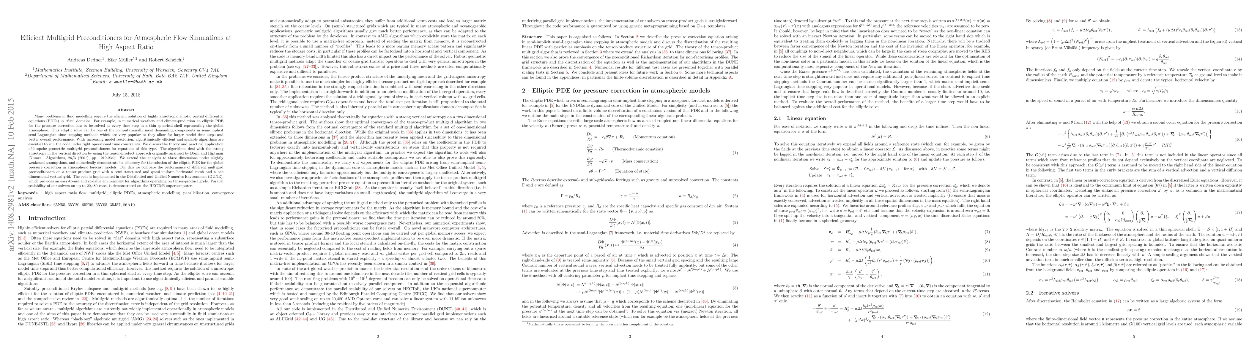Many problems in fluid modelling require the efficient solution of highly anisotropic elliptic partial differential equations (PDEs) in "flat" domains. For example, in numerical weather- and climate-prediction an elliptic PDE for the pressure correction has to be solved at every time step in a thin spherical shell representing the global atmosphere. This elliptic solve can be one of the computationally most demanding components in semi-implicit semi-Lagrangian time stepping methods which are very popular as they allow for larger model time steps and better overall performance. With increasing model resolution, algorithmically efficient and scalable algorithms are essential to run the code under tight operational time constraints. We discuss the theory and practical application of bespoke geometric multigrid preconditioners for equations of this type. The algorithms deal with the strong anisotropy in the vertical direction by using the tensor-product approach originally analysed by B\"{o}rm and Hiptmair [Numer. Algorithms, 26/3 (2001), pp. 219-234]. We extend the analysis to three dimensions under slightly weakened assumptions, and numerically demonstrate its efficiency for the solution of the elliptic PDE for the global pressure correction in atmospheric forecast models. For this we compare the performance of different multigrid preconditioners on a tensor-product grid with a semi-structured and quasi-uniform horizontal mesh and a one dimensional vertical grid. The code is implemented in the Distributed and Unified Numerics Environment (DUNE), which provides an easy-to-use and scalable environment for algorithms operating on tensor-product grids. Parallel scalability of our solvers on up to 20,480 cores is demonstrated on the HECToR supercomputer.