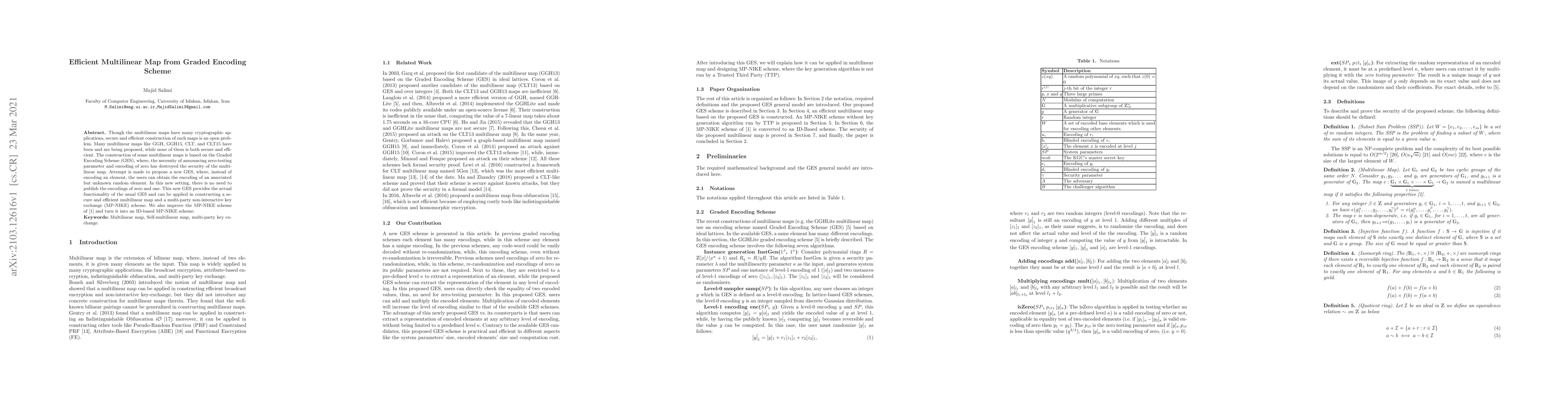 This paper proposes a new Graded Encoding Scheme (GES) for constructing secure and efficient multilinear maps, eliminating the need for publishing zero-testing parameters and encodings of zero and one. The new GES enables the creation of a secure multilinear map and an improved ID-based multi-party non-interactive key exchange scheme.