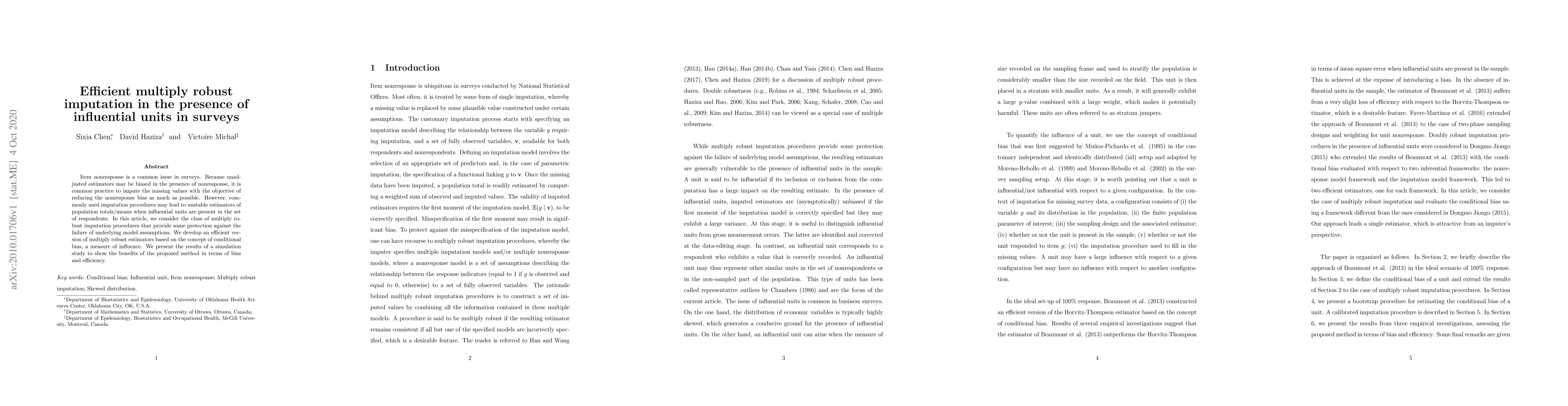A new method for imputing missing values in surveys with influential units is proposed, offering improved accuracy and efficiency. The study demonstrates the benefits of this approach through a simulation study.