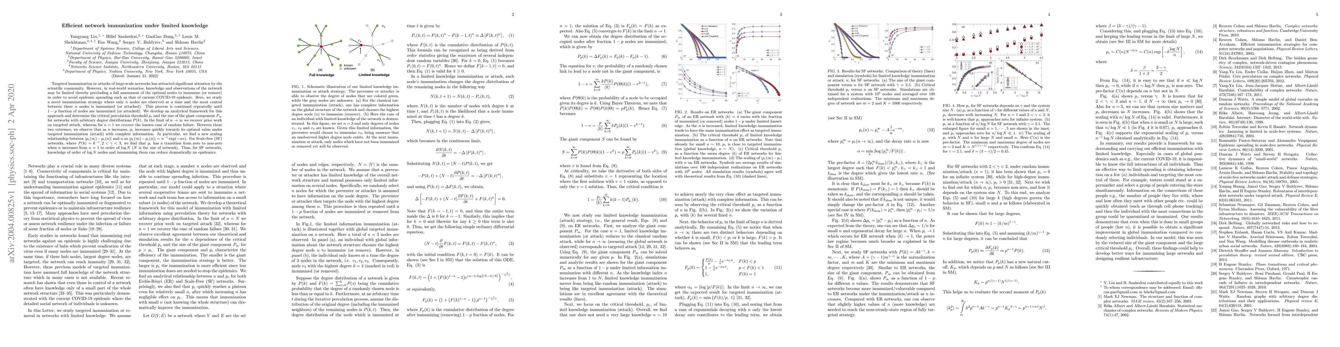 Targeted immunization or attacks of large-scale networks has attracted significant attention by the scientific community. However, in real-world scenarios, knowledge and observations of the network may be limited thereby precluding a full assessment of the optimal nodes to immunize (or remove) in order to avoid epidemic spreading such as that of current COVID-19 epidemic. Here, we study a novel immunization strategy where only $n$ nodes are observed at a time and the most central between these $n$ nodes is immunized (or attacked). This process is continued repeatedly until $1-p$ fraction of nodes are immunized (or attacked). We develop an analytical framework for this approach and determine the critical percolation threshold $p_c$ and the size of the giant component $P_{\infty}$ for networks with arbitrary degree distributions $P(k)$. In the limit of $n\to\infty$ we recover prior work on targeted attack, whereas for $n=1$ we recover the known case of random failure. Between these two extremes, we observe that as $n$ increases, $p_c$ increases quickly towards its optimal value under targeted immunization (attack) with complete information. In particular, we find a new scaling relationship between $|p_c(\infty)-p_c(n)|$ and $n$ as $|p_c(\infty)-p_c(n)|\sim n^{-1}\exp(-\alpha n)$. For Scale-free (SF) networks, where $P(k)\sim k^{-\gamma}, 2<\gamma<3$, we find that $p_c$ has a transition from zero to non-zero when $n$ increases from $n=1$ to order of $\log N$ ($N$ is the size of network). Thus, for SF networks, knowledge of order of $\log N$ nodes and immunizing them can reduce dramatically an epidemics.