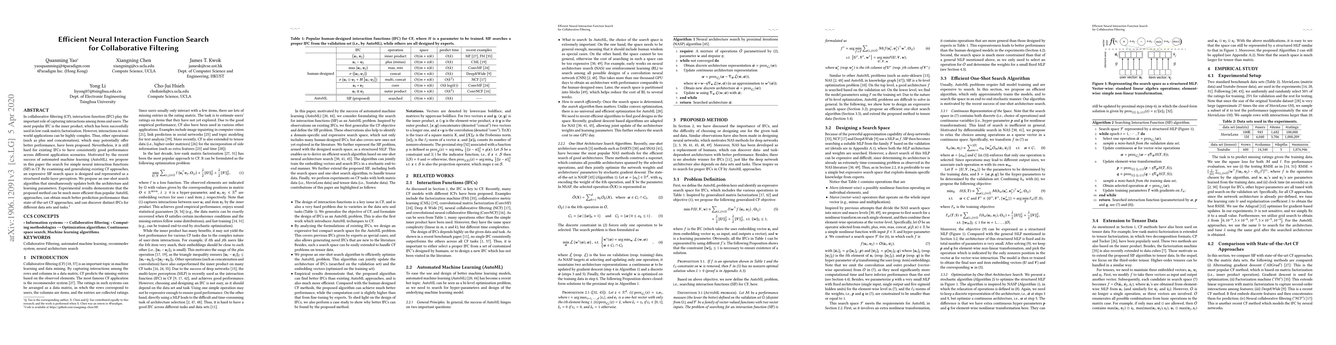 Researchers proposed a new method to search for simple neural interaction functions in collaborative filtering, achieving better performance than existing approaches with improved efficiency.