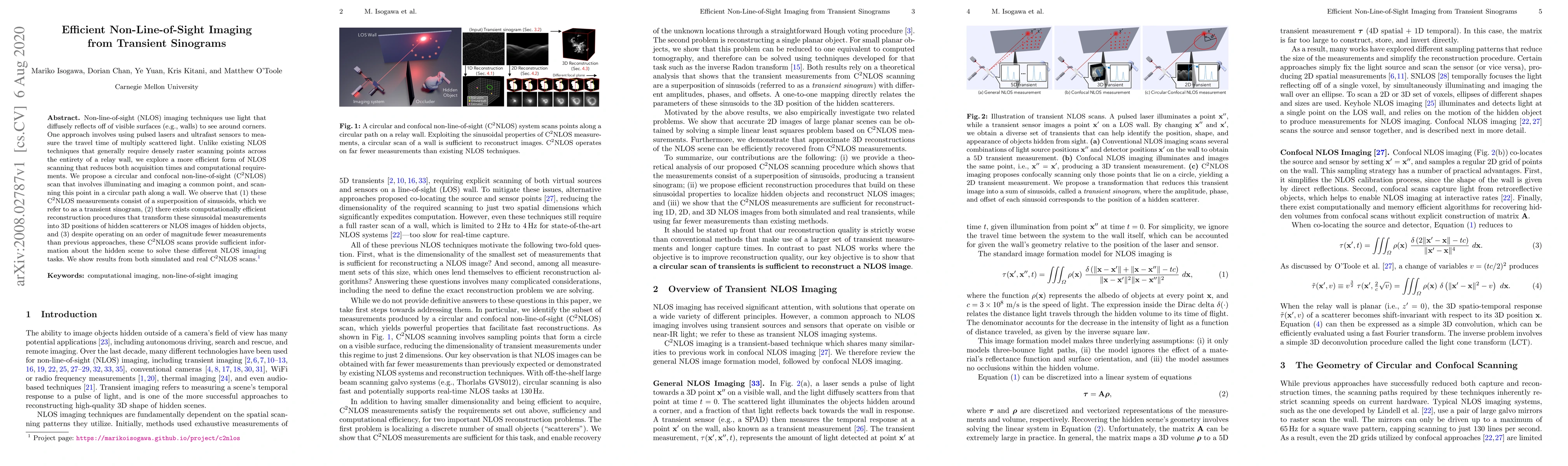 This paper proposes a novel C2NLOS technique for efficient non-line-of-sight imaging by scanning a common point in a circular path, generating transient sinograms that allow for rapid reconstruction of hidden objects. The method significantly reduces acquisition time and computational load compared to traditional NLOS imaging techniques.