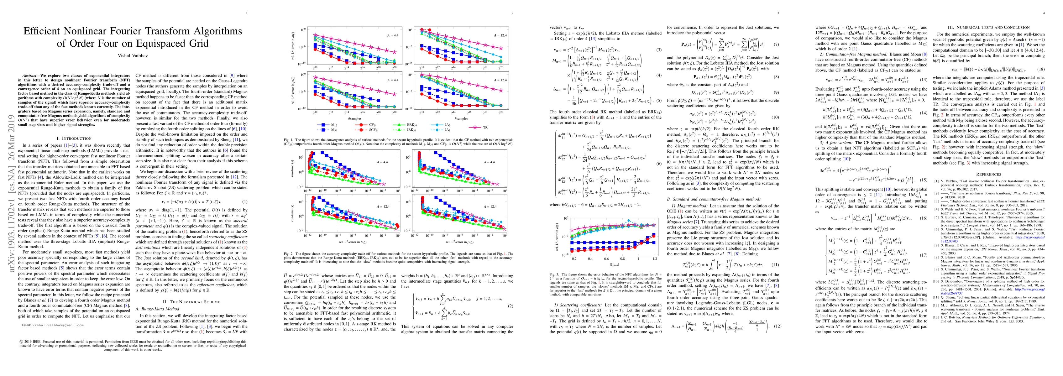 This paper presents new efficient nonlinear Fourier transform algorithms with a high accuracy-complexity trade-off that can achieve convergence order of 4 on an equispaced grid, outperforming existing methods in terms of complexity.