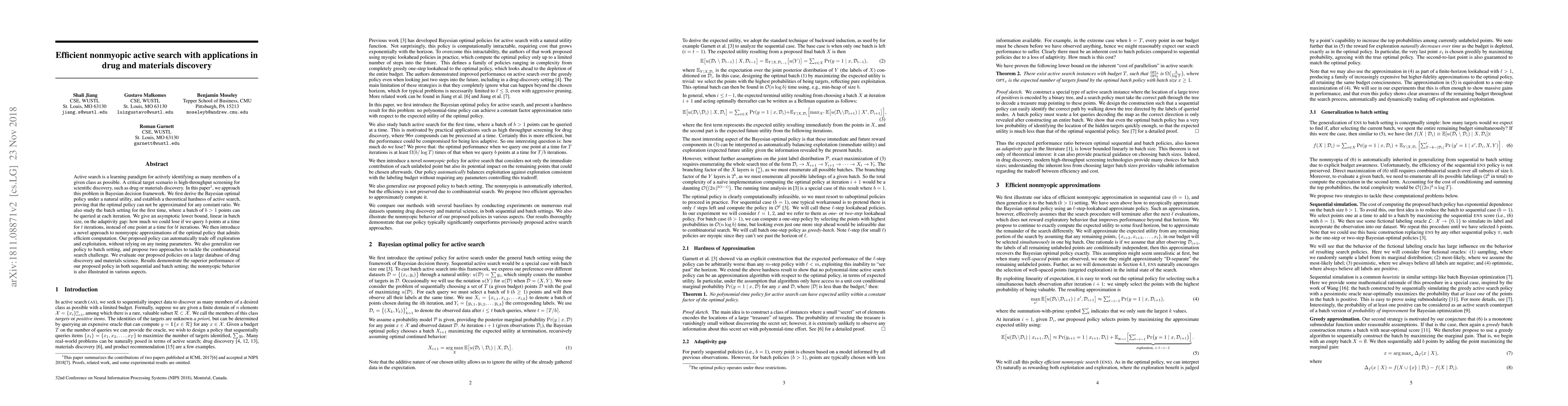 This paper develops a Bayesian decision framework for efficient nonmyopic active search, addressing the challenge of high-throughput screening in drug and materials discovery. It introduces a novel policy that balances exploration and exploitation without tuning parameters, demonstrating superior performance in both sequential and batch settings through extensive evaluations.