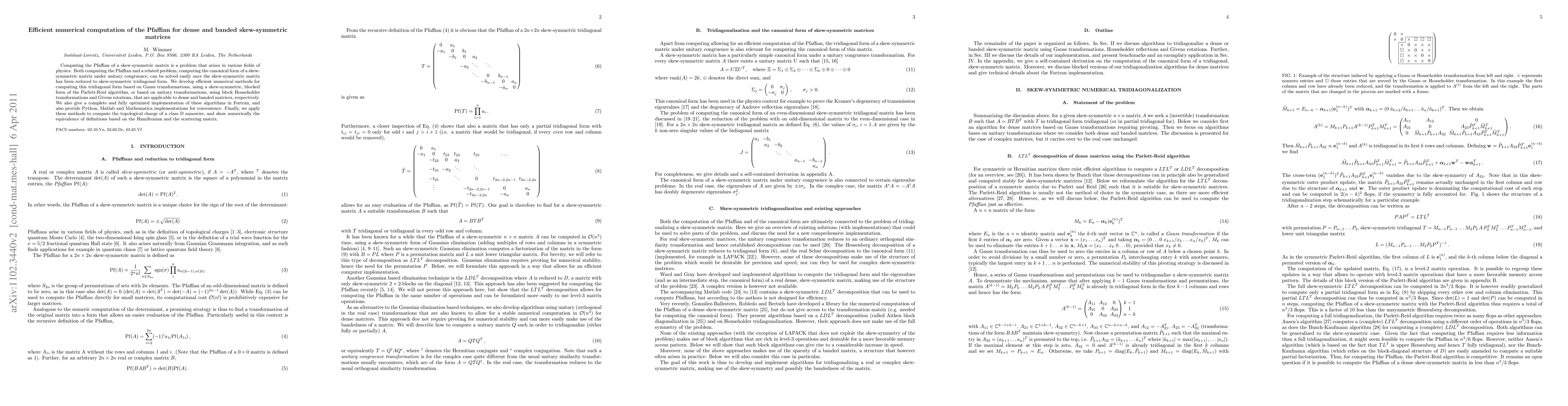 Researchers developed efficient numerical methods to compute the Pfaffian of dense and banded skew-symmetric matrices, with applications in physics and nanotechnology, providing a clear pathway for topological charge calculations.