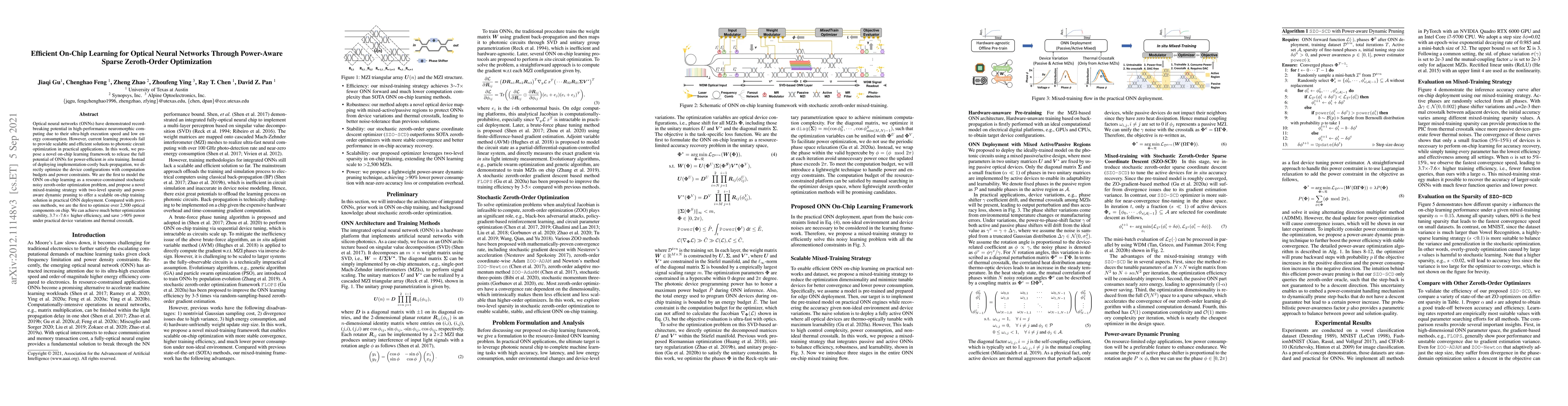 This paper proposes a novel on-chip learning framework for optical neural networks (ONNs) that optimizes device configurations directly, achieving scalable training with significant power savings and efficiency improvements through a power-aware sparse zeroth-order optimization approach. The method demonstrates superior optimization stability and efficiency, saving over 90% power compared to previous methods.