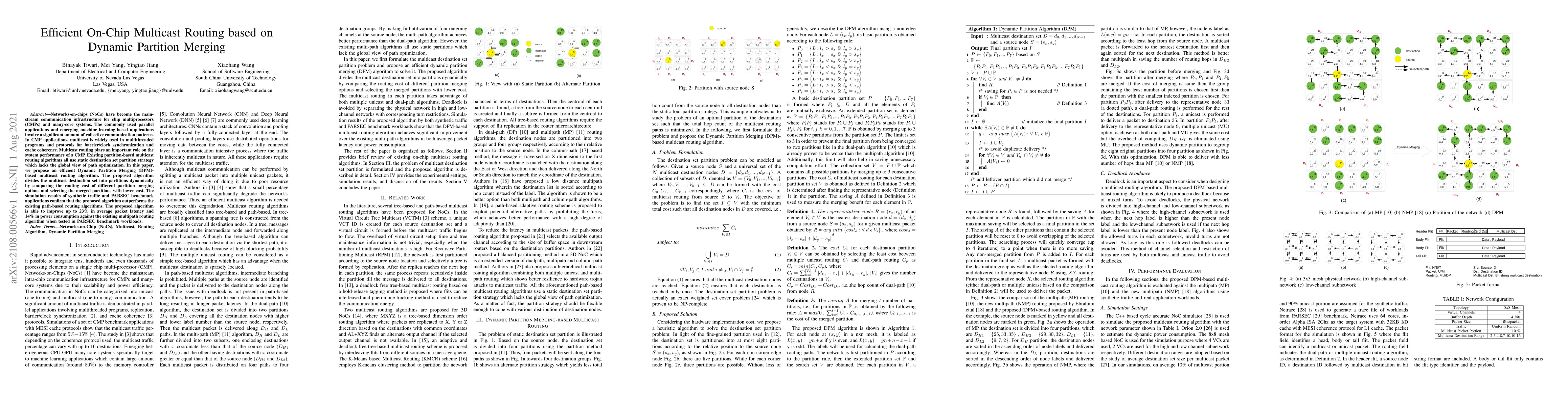 This paper proposes a Dynamic Partition Merging (DPM)-based multicast routing algorithm for Networks-on-chips (NoCs) to optimize system performance in chip multiprocessors. The DPM algorithm dynamically merges partitions to minimize routing cost, achieving up to 23% lower packet latency and 14% lower power consumption compared to existing multipath routing algorithms.