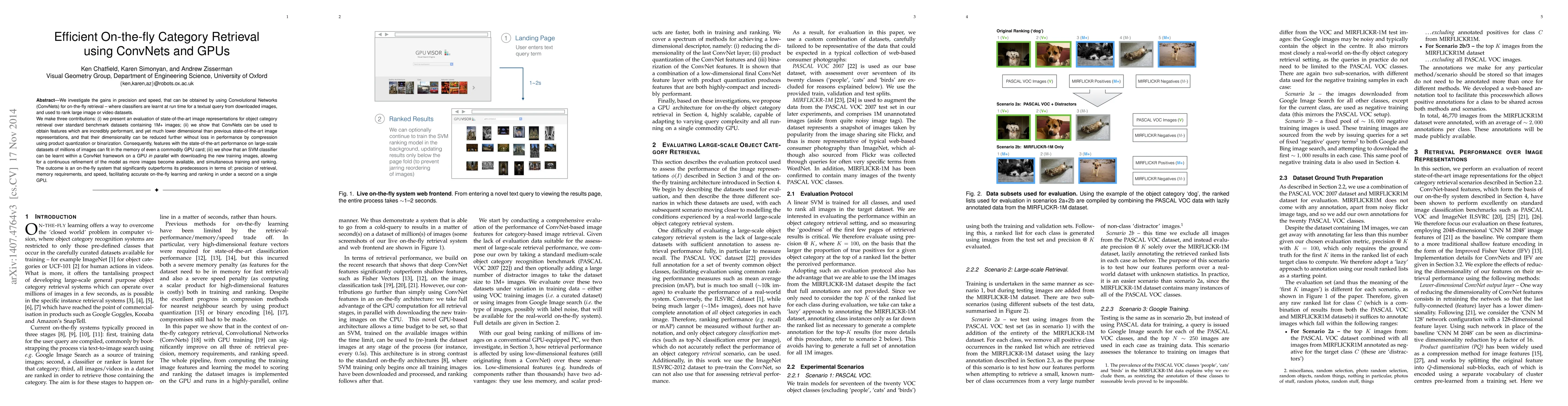 We investigate the gains in precision and speed, that can be obtained by using Convolutional Networks (ConvNets) for on-the-fly retrieval - where classifiers are learnt at run time for a textual query from downloaded images, and used to rank large image or video datasets. We make three contributions: (i) we present an evaluation of state-of-the-art image representations for object category retrieval over standard benchmark datasets containing 1M+ images; (ii) we show that ConvNets can be used to obtain features which are incredibly performant, and yet much lower dimensional than previous state-of-the-art image representations, and that their dimensionality can be reduced further without loss in performance by compression using product quantization or binarization. Consequently, features with the state-of-the-art performance on large-scale datasets of millions of images can fit in the memory of even a commodity GPU card; (iii) we show that an SVM classifier can be learnt within a ConvNet framework on a GPU in parallel with downloading the new training images, allowing for a continuous refinement of the model as more images become available, and simultaneous training and ranking. The outcome is an on-the-fly system that significantly outperforms its predecessors in terms of: precision of retrieval, memory requirements, and speed, facilitating accurate on-the-fly learning and ranking in under a second on a single GPU.