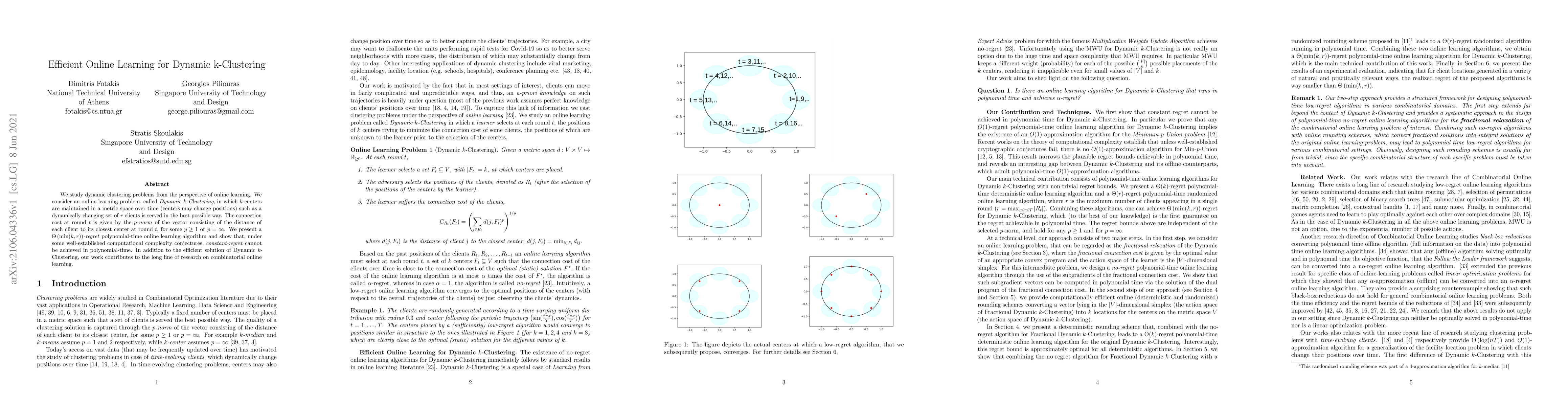 This paper proposes an efficient online learning algorithm for Dynamic $k$-Clustering, achieving $\Theta\left( \min(k,r) \right)$-regret in polynomial time. It also proves that constant-regret cannot be achieved under standard complexity assumptions, contributing to combinatorial online learning research.