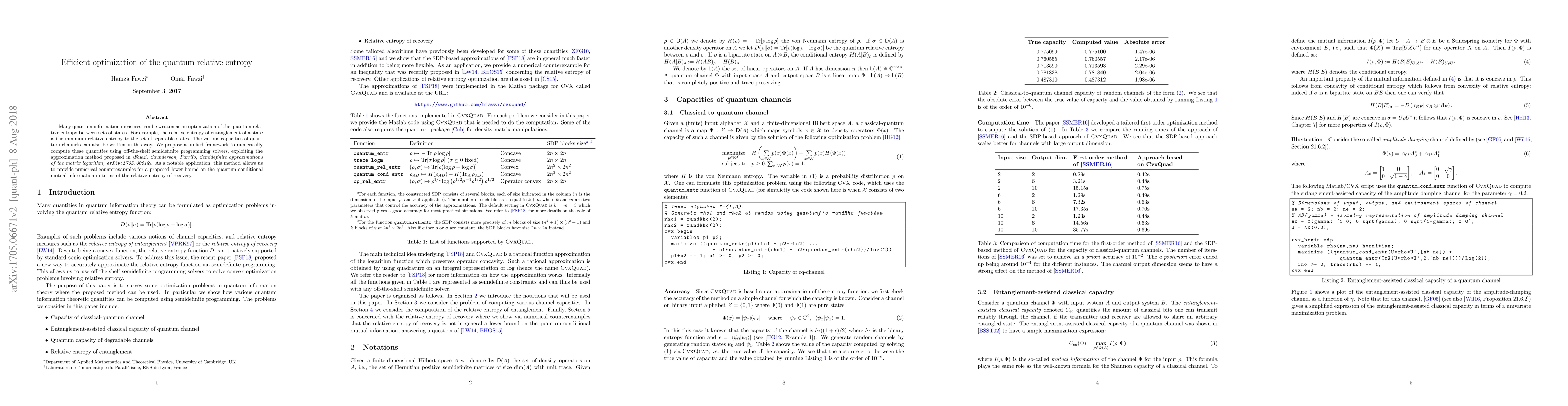 This paper proposes a unified framework for efficiently computing various quantum information measures through optimization of the quantum relative entropy, leveraging semidefinite programming solvers and an approximation method for the matrix logarithm. It also uses this framework to challenge a proposed lower bound on quantum conditional mutual information.