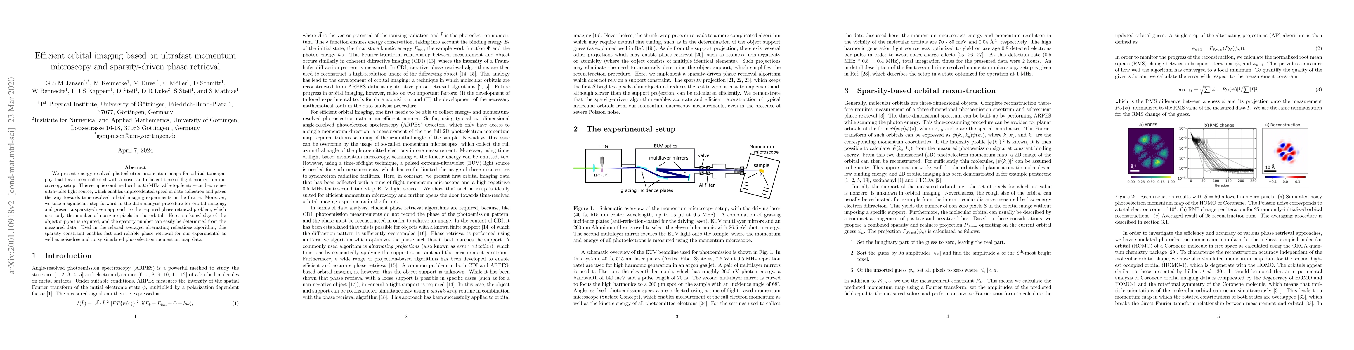 This paper introduces a novel ultrafast momentum microscopy setup combined with a femtosecond light source for high-speed orbital imaging, and proposes a sparsity-driven phase retrieval method for efficient data analysis, eliminating the need for prior support knowledge.