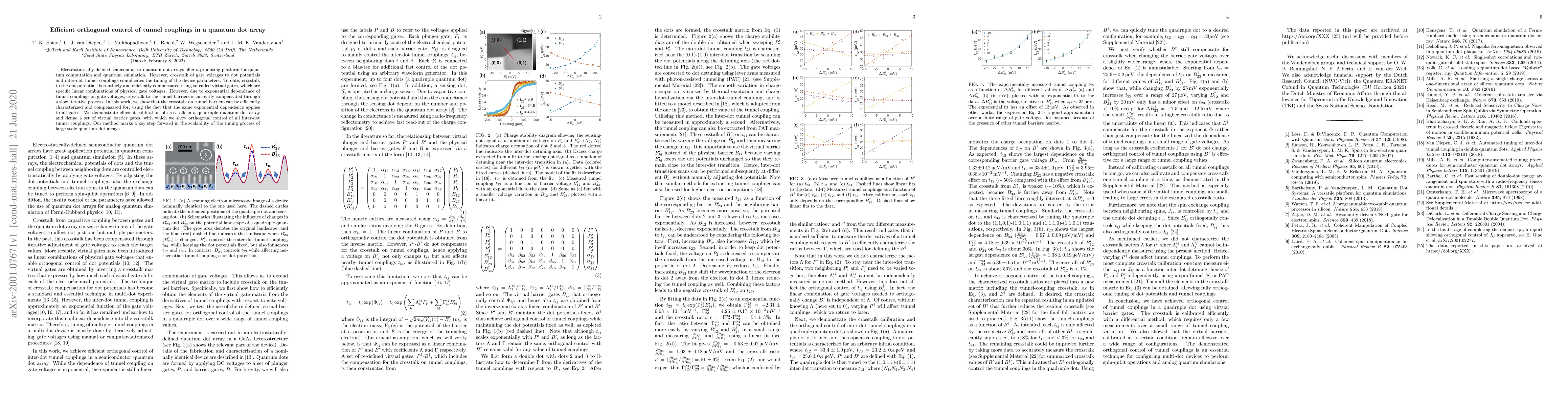 This paper presents a method for efficiently calibrating and compensating crosstalk in tunnel couplings of a semiconductor quantum dot array, using virtual barrier gates. This advancement enables orthogonal control of all inter-dot tunnel couplings, significantly improving the scalability of quantum dot arrays for quantum computation.