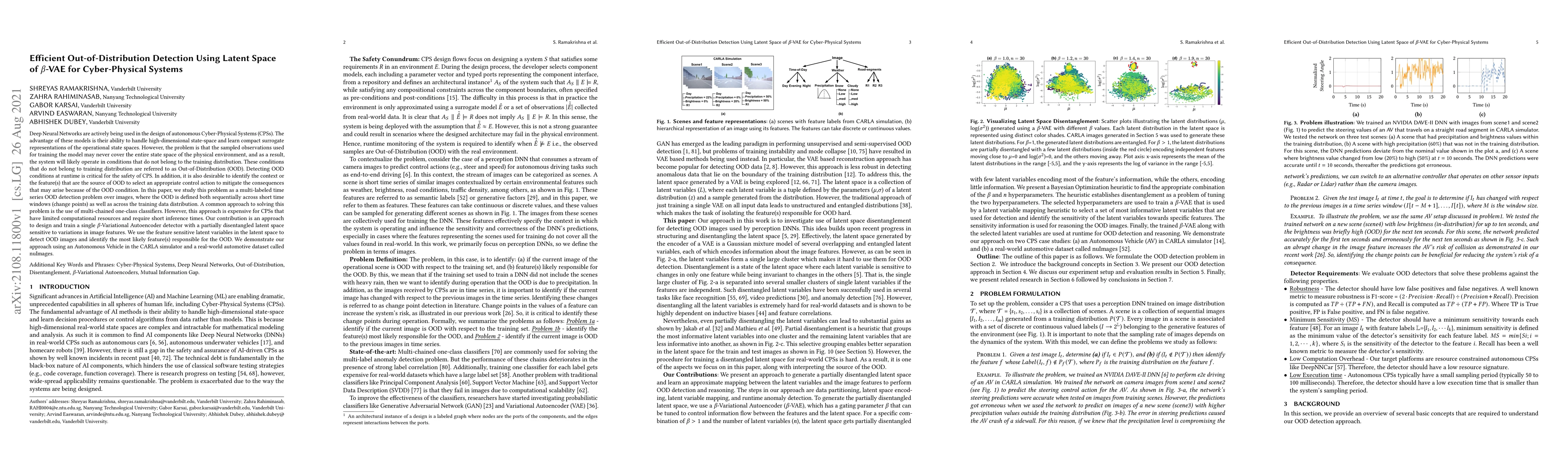 This paper proposes an efficient out-of-distribution detection method using a $\beta$-Variational Autoencoder (VAE) for autonomous Cyber-Physical Systems. The approach leverages a partially disentangled latent space to identify OOD conditions and the features causing them, offering a more resource-efficient alternative to multi-chained one-class classifiers.