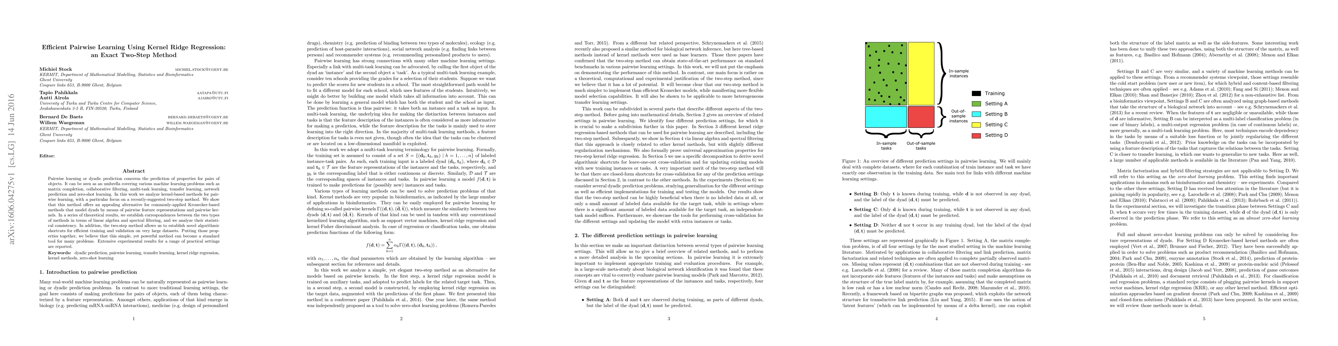This paper proposes an efficient two-step kernel ridge regression method for pairwise learning, demonstrating its theoretical advantages over Kronecker-based methods and providing novel algorithmic shortcuts for large datasets. Extensive experiments show its potential as a standard tool for various machine learning problems.