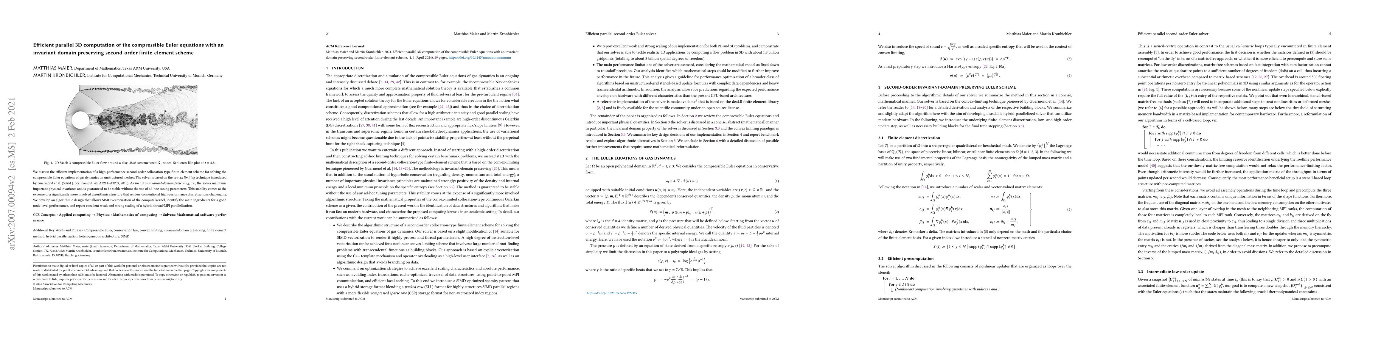 Researchers developed a high-performance algorithm for solving the compressible Euler equations on unstructured meshes using a second-order finite-element scheme, achieving excellent weak and strong scaling.