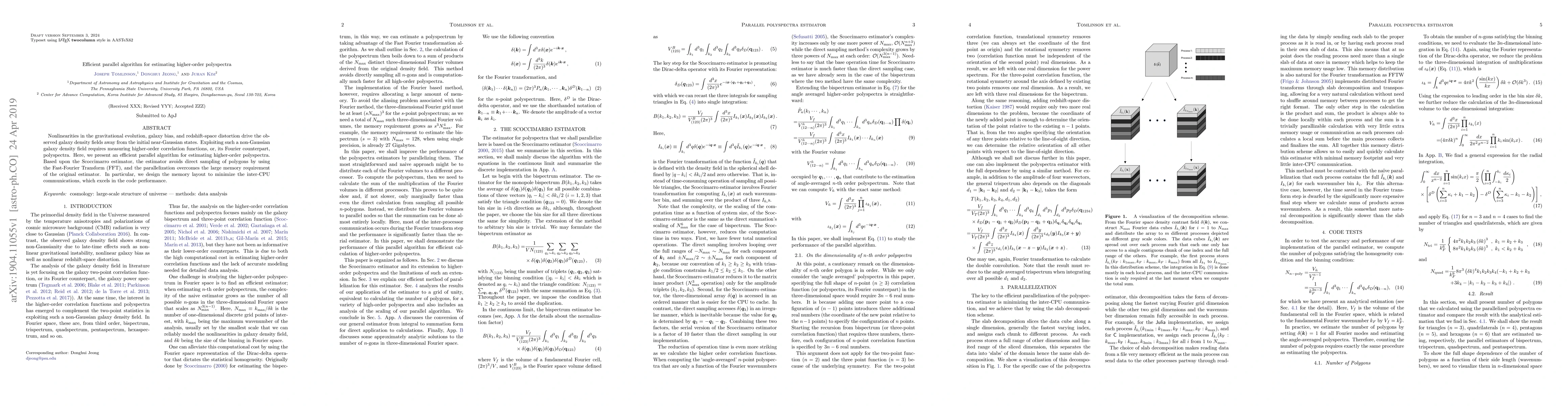 Researchers developed an efficient parallel algorithm to estimate higher-order polyspectra of galaxy density fields, improving performance with memory optimization and reducing inter-CPU communications.