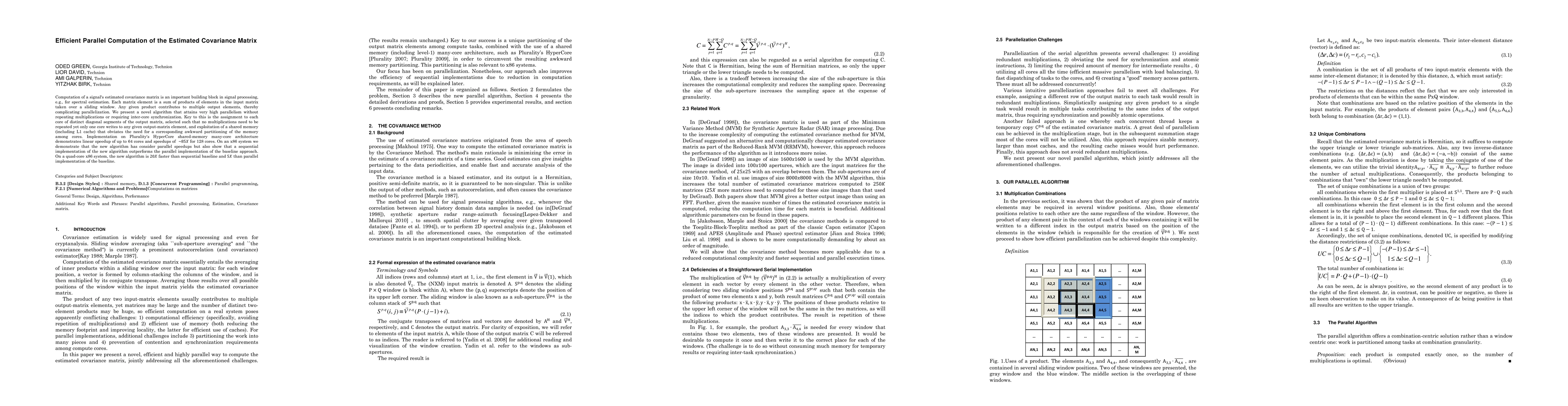 Researchers developed an algorithm to efficiently compute a signal's estimated covariance matrix in parallel, achieving speedups of up to 85X on 128 cores and outperforming sequential implementations.