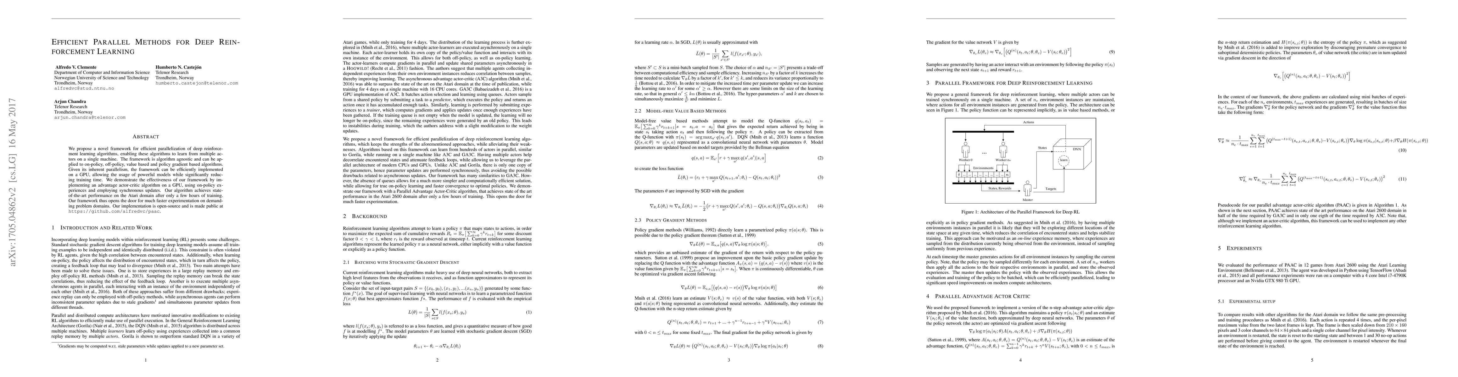 This research proposes a framework for parallelizing deep reinforcement learning algorithms to significantly reduce training time on GPUs.